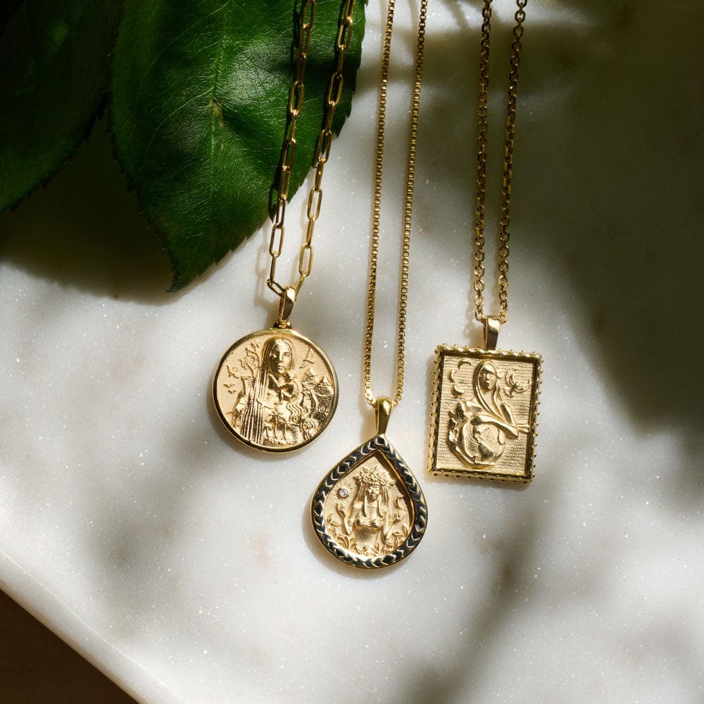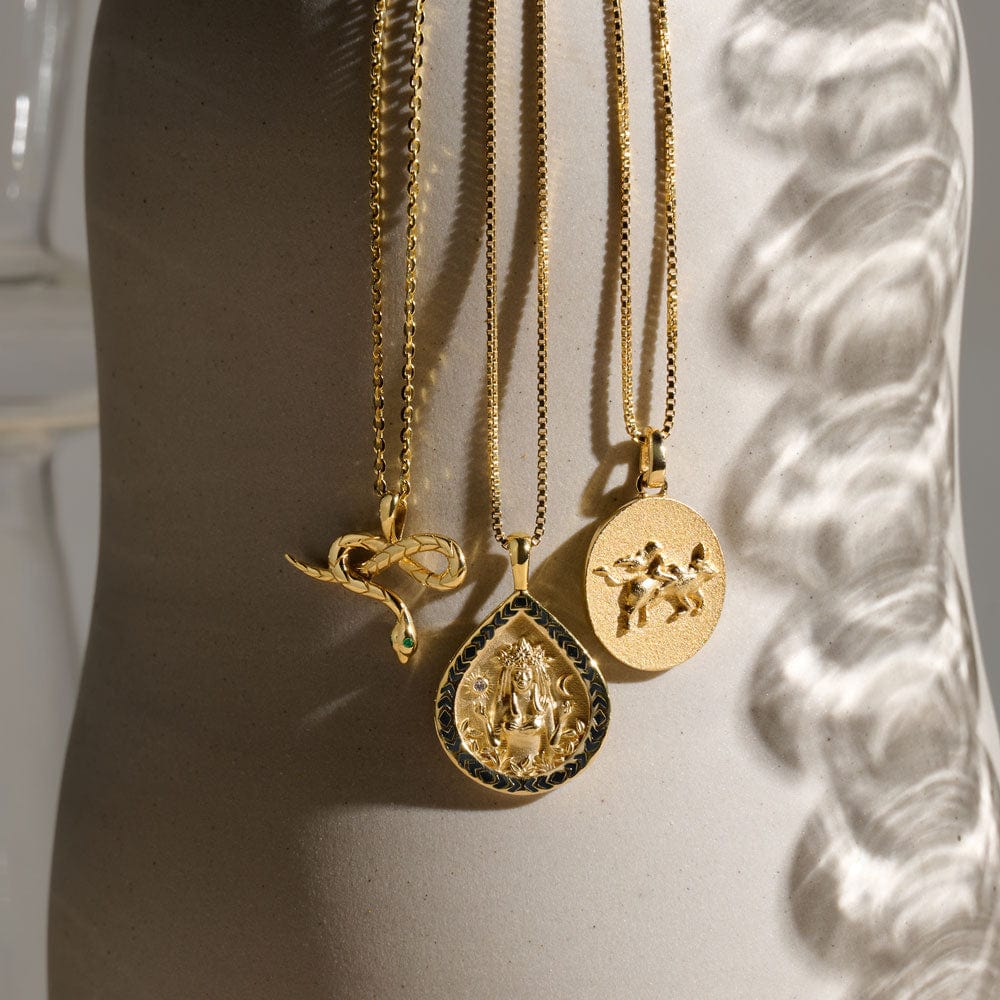 Ala Necklace by Awe Inspired — The Ala Necklace honors the Igbo Goddess of the Earth, fertility, and morality. Ala, revered as the protector of the land and the moral compass of her people, symbolizes nurturing, growth, and ethical balance. This pendant is a beautiful tribute to those who value the connection between nature and spirituality. A perfect piece for those seeking to channel strength from the Earth and the principles of fertility and moral integrity.