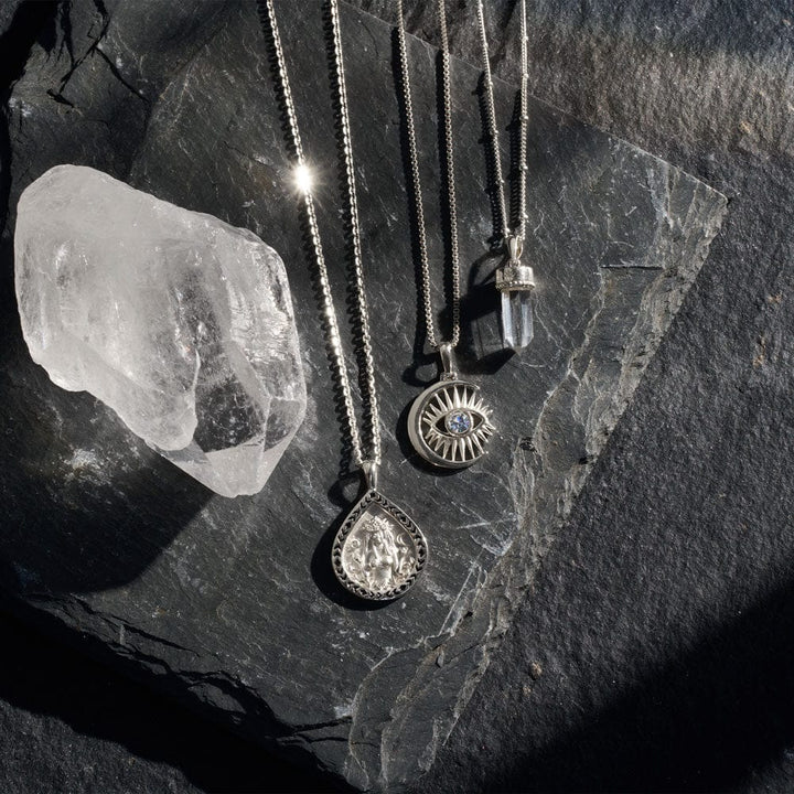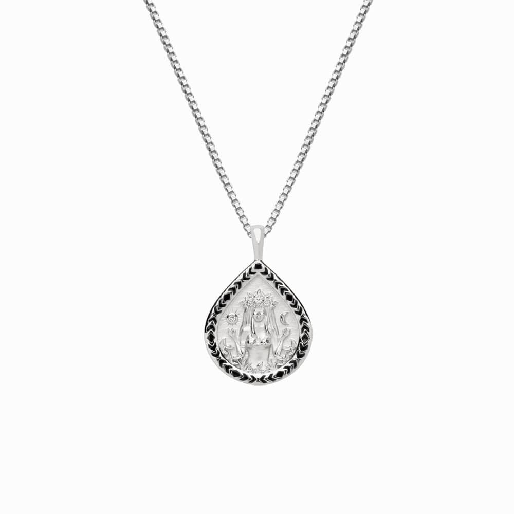 Handcrafted in sterling silver, the Ala pendant measures 1 inch in diameter and is suspended from an 18-inch adjustable chain with a lobster clasp. The pendant is polished to a fine finish, embodying the divine energy of the Igbo Goddess.
