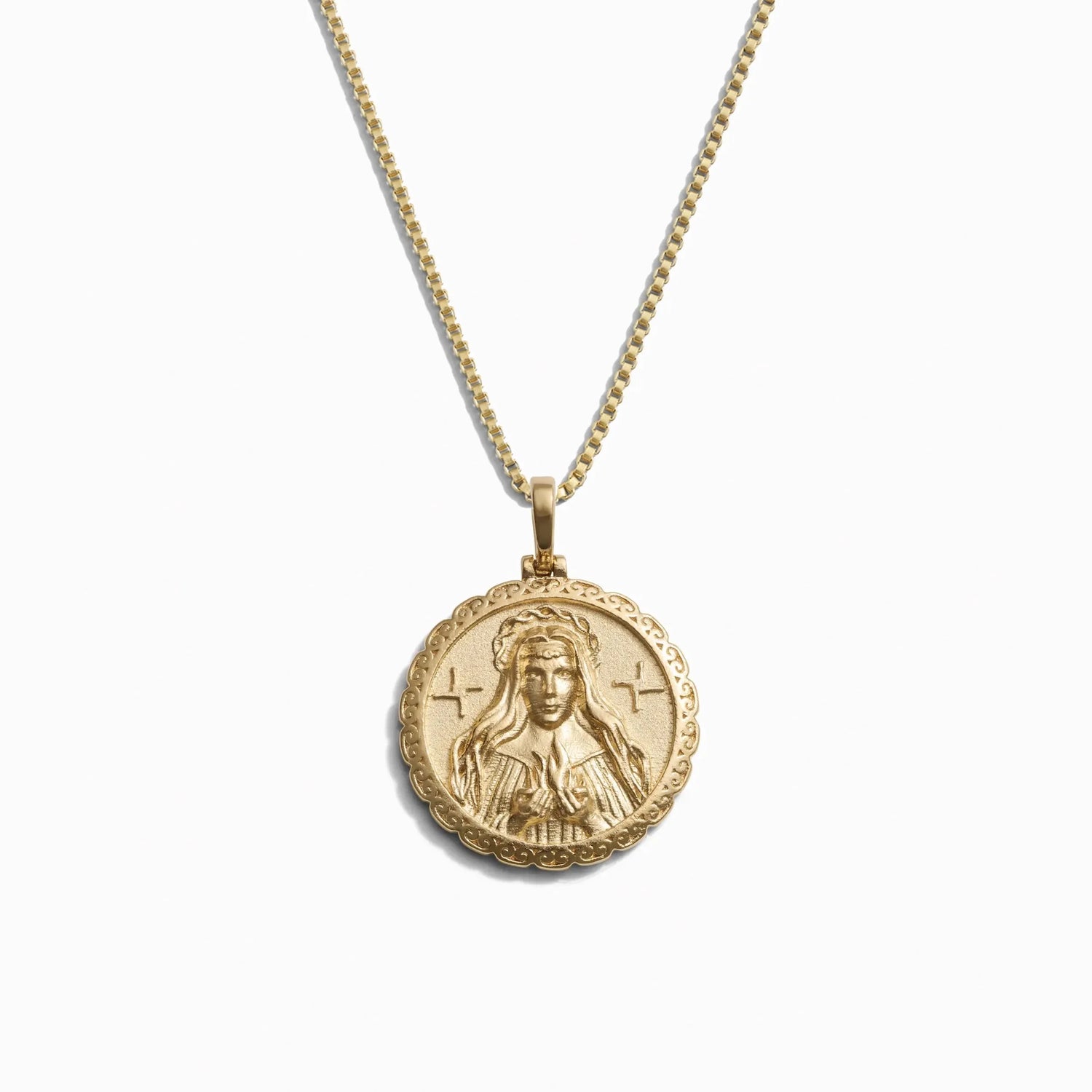Made from 14K yellow gold vermeil, the pendant measures 1 inch in length and is paired with an 18-inch adjustable chain with a spring-ring clasp.