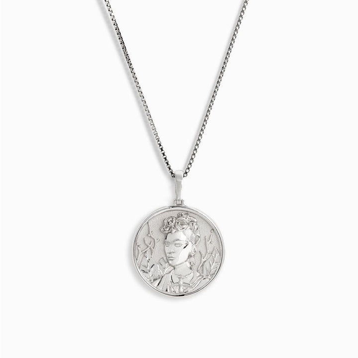 Frida Kahlo Necklace by Awe Inspired — Inspired by the fearless Frida Kahlo, this necklace enhances creativity and personal expression. Frida’s bold, artistic spirit shines through in this sterling silver piece, making it perfect for those seeking to channel their creative powers.