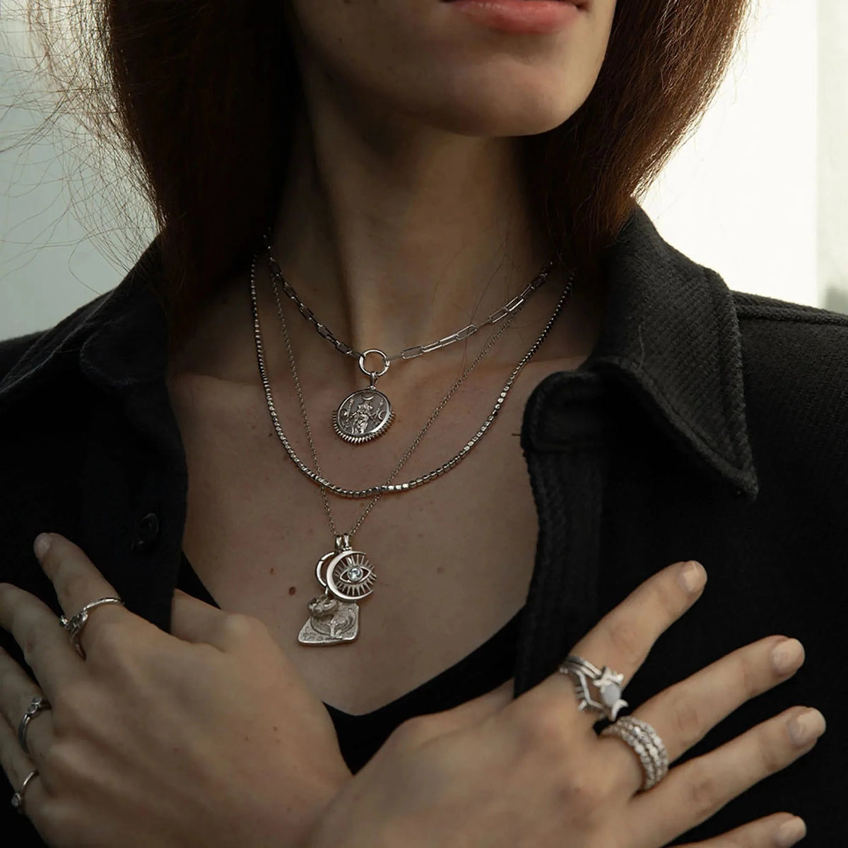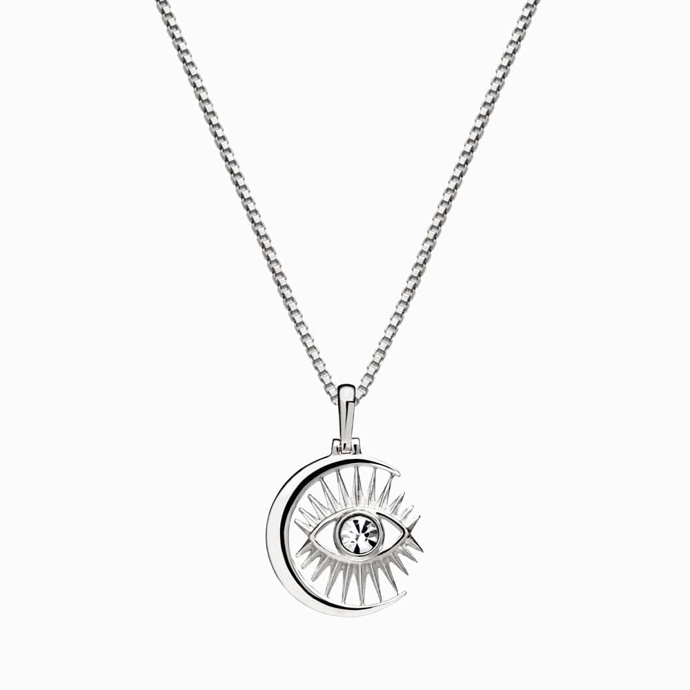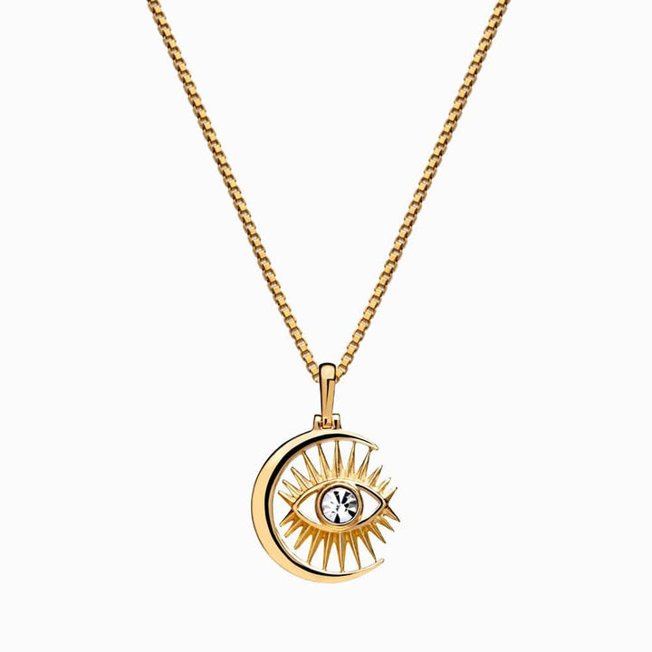 Watchful Moon Eye Necklace by Awe Inspired — The Moon and Eye together form a powerful talisman that protects against negativity, offers tranquility, and brings insight. This necklace is designed to guard you from destructive energies and guide you toward inner peace.