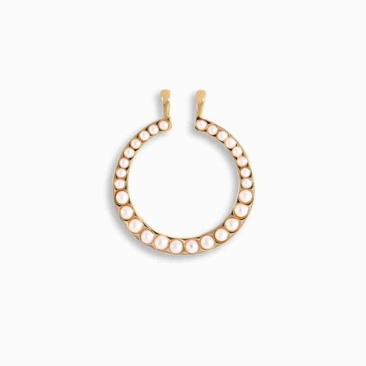 Made from 14K yellow gold vermeil with a pearl inlay, the halo is designed to fit standard 20mm Goddess pendants.