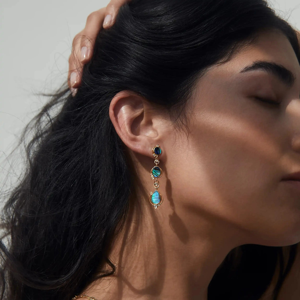 Abalone Stardrop Earrings by Awe Inspired — Show-stopping drop earrings featuring abalone and white topaz, these pieces balance the energies of sea and sky. Designed with a post backing for support, they are perfect for elevating your everyday look.