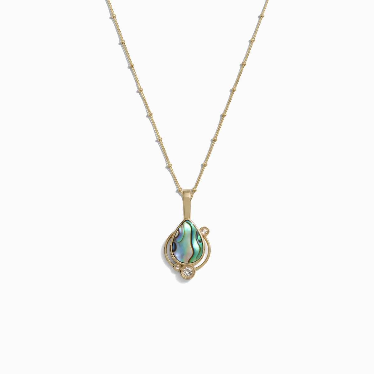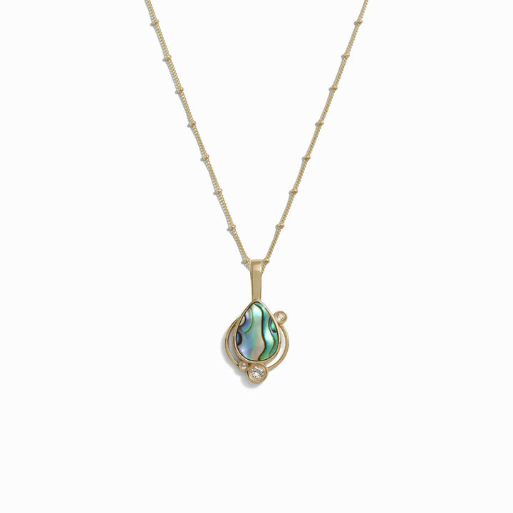 Abalone Astral Necklace by Awe Inspired — An iridescent abalone halo enhances the Goddess pendant, amplifying your energy and aligning it with the universe. Each piece is designed to reflect the balance and harmony of nature.