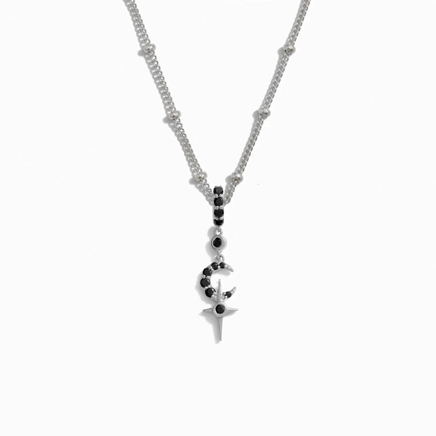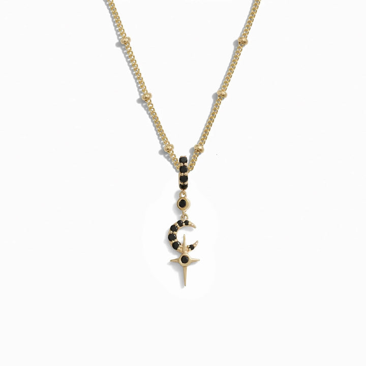 Black Spinel Crescent Cross Necklace