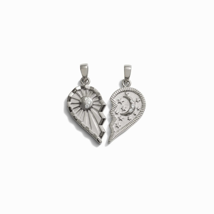 These Sun & Moon Friendship Amulets by Awe Inspired are designed as a modern take on classic friendship charms, symbolizing complementary energies—bright and mysterious, golden retriever and black cat. The fluted edges and white topaz accents make this set a powerful symbol of the connection you share with your closest friend.