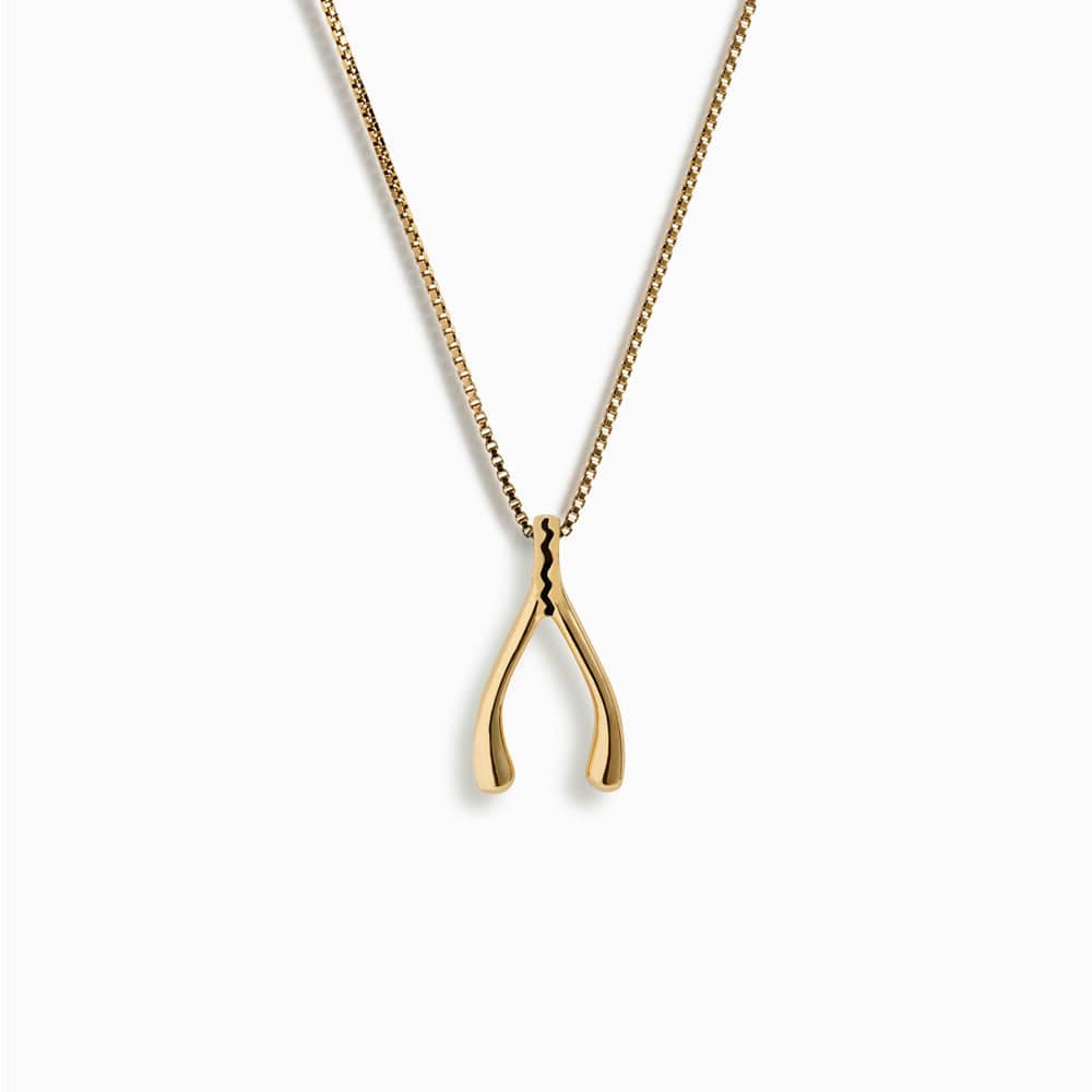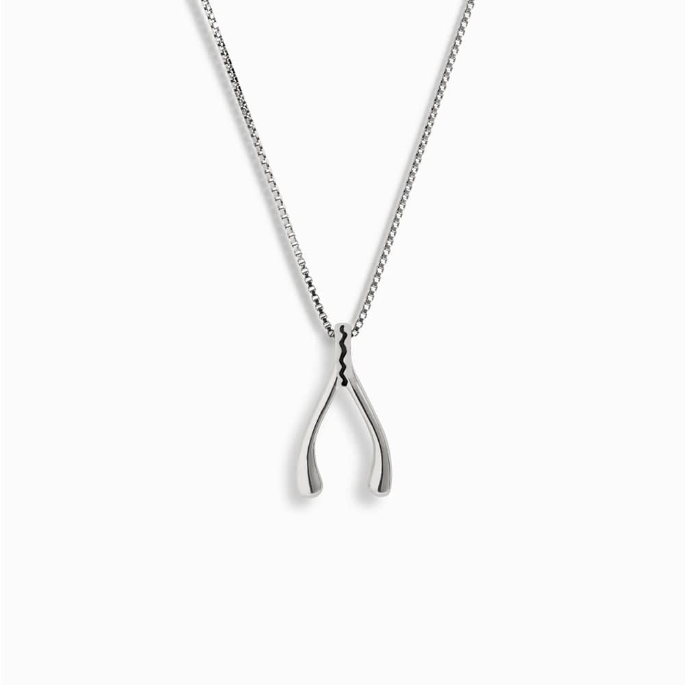 This Wishbone Necklace by Awe Inspired carries a symbolic message of shared luck, with a black enamel 'crack' in the center representing evenly distributed fortune. A great piece to gift to a loved one or to wear as a reminder of good luck and balance.