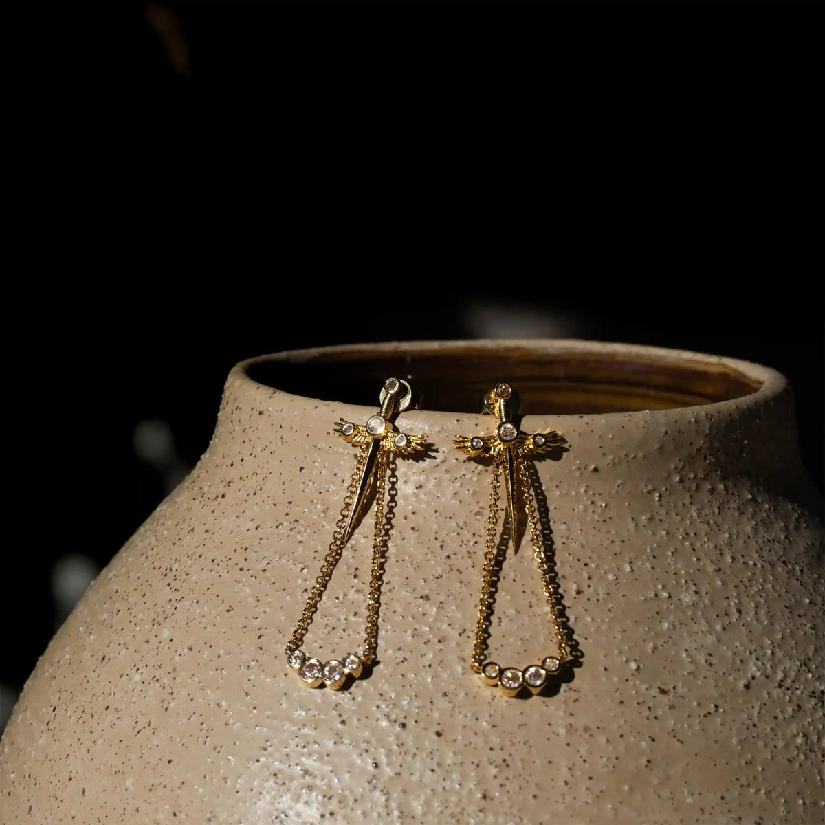 Winged Sword Drop Earrings