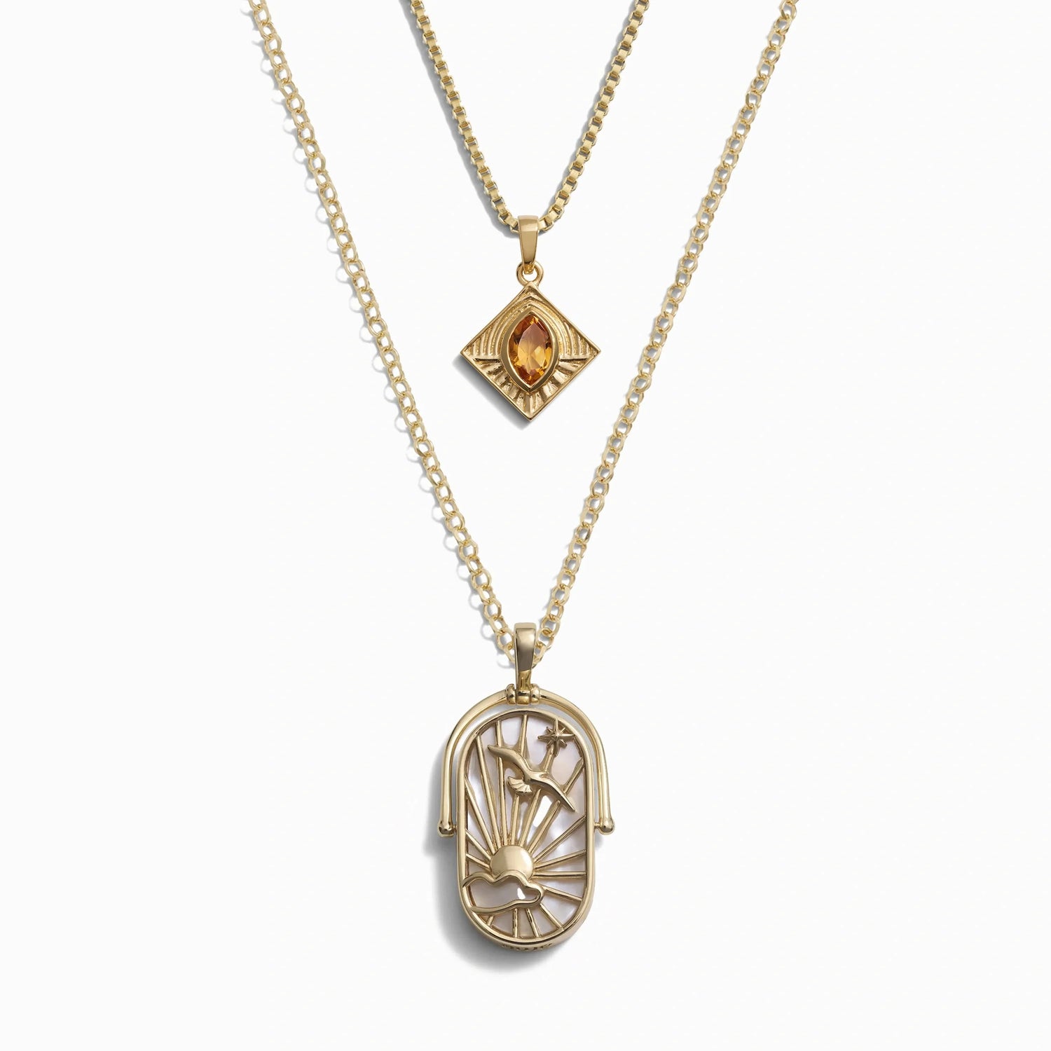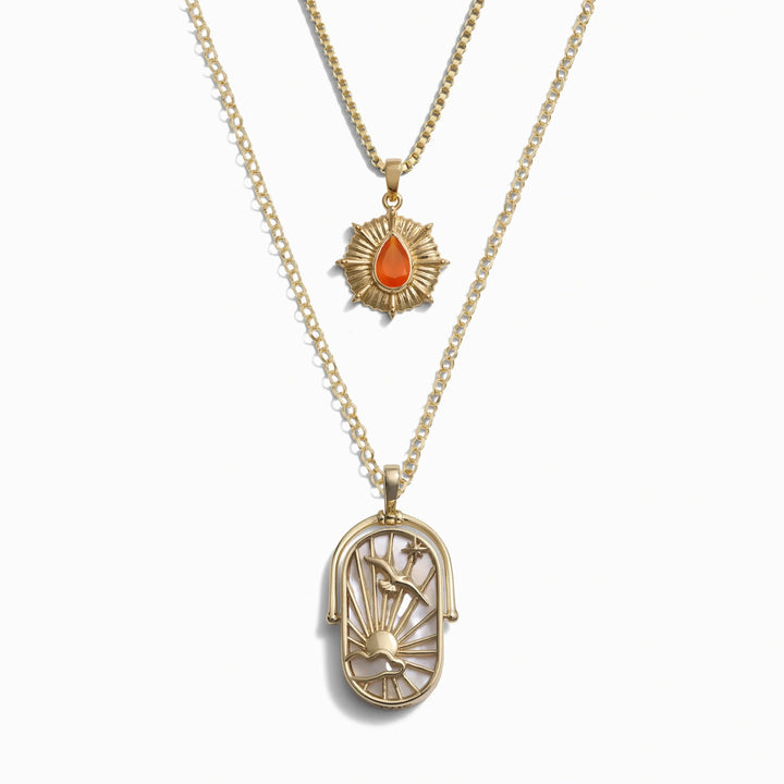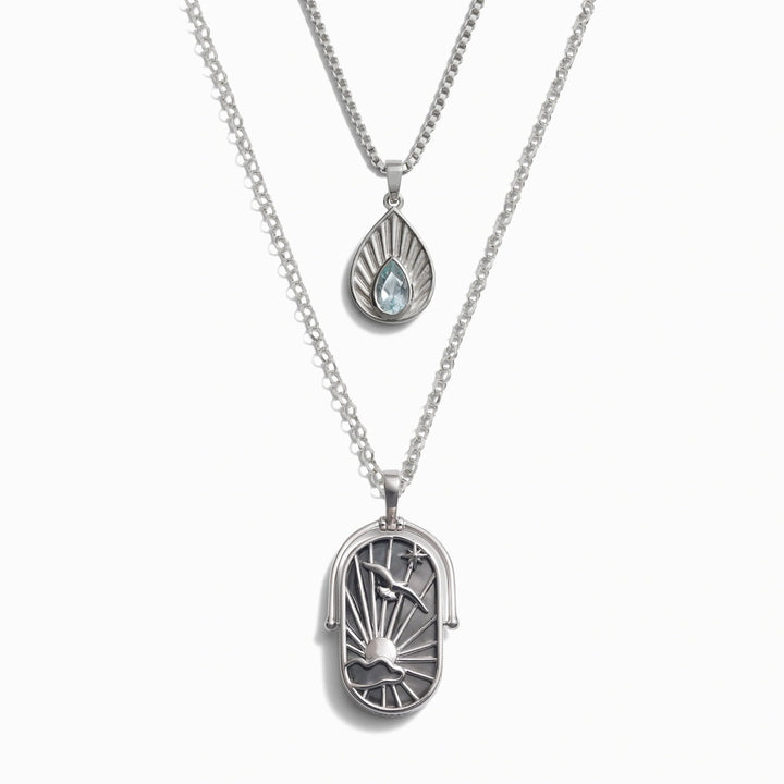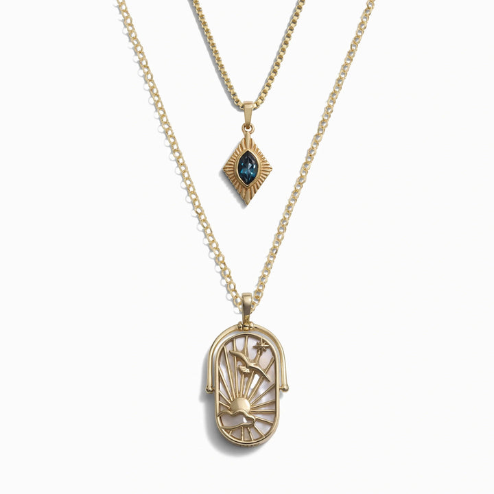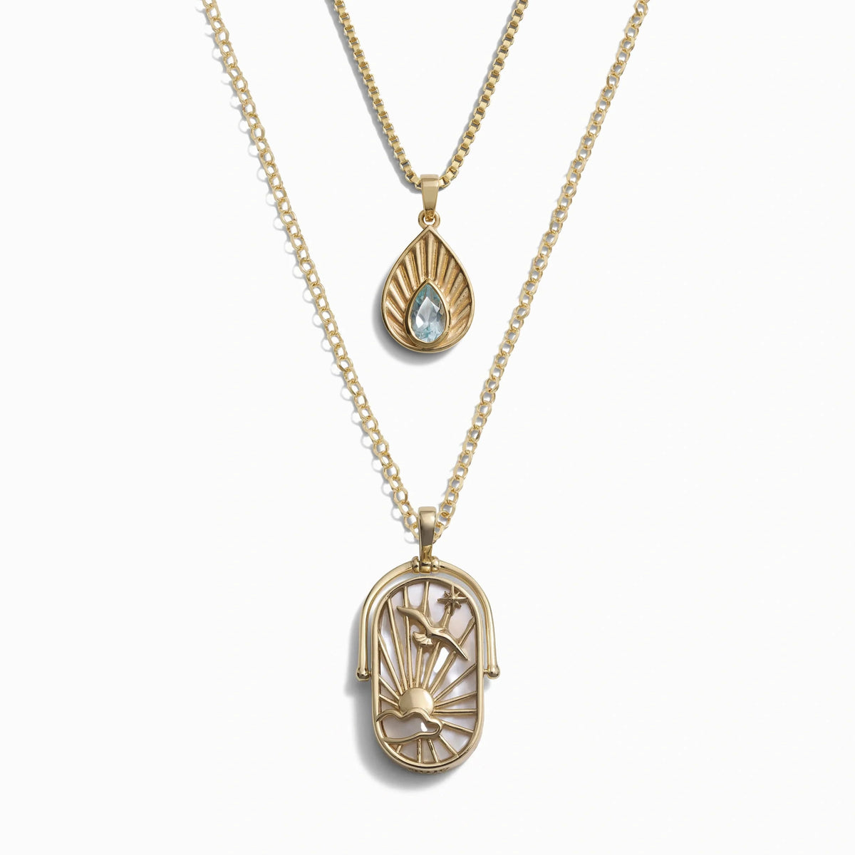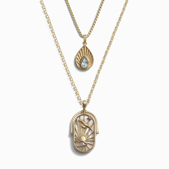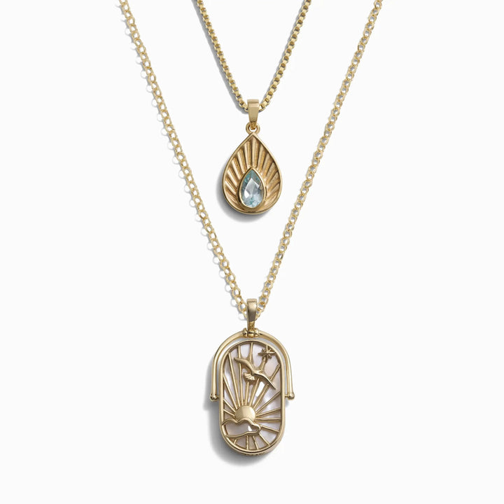 This Elemental Aura Necklace Set by Awe Inspired allows you to choose your Element based on your zodiac and your Aura based on the energy you want to balance, enhance, or project. Each pendant represents a different aura color, connecting to specific chakras to provide energetic balance and alignment. Whether you're drawn to the passion of a red garnet or the intuition of a London blue topaz, this set is fully customizable to reflect your unique energy.
