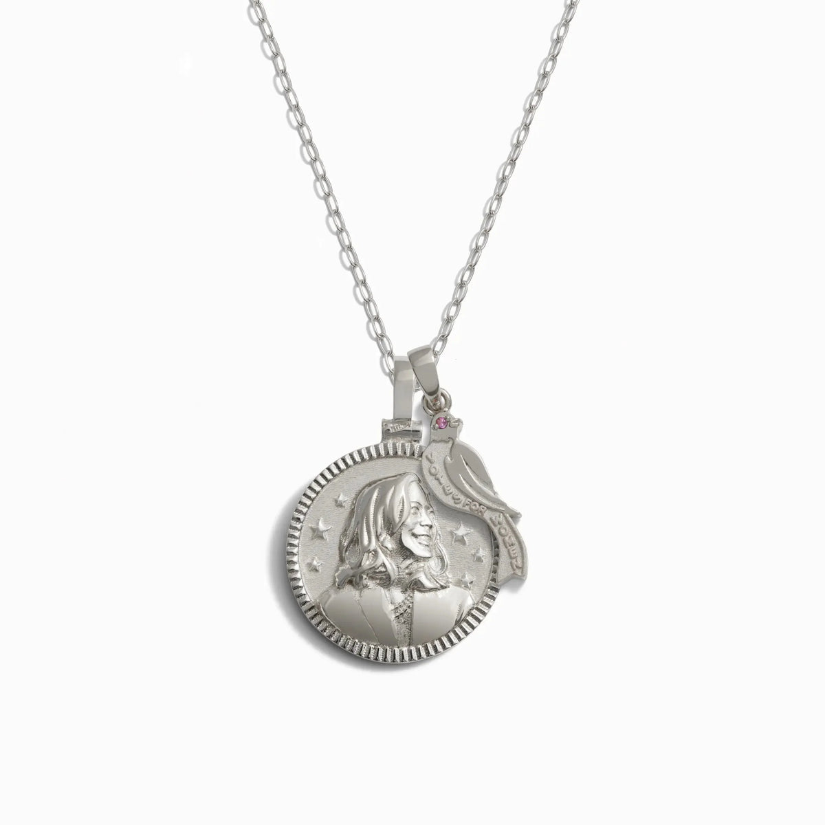 Votes for Women Kamala Necklace Set: Celebrate a historical moment in the 2024 Election with this special Kamala Harris pendant set. Featuring a two-sided design with Kamala on one side and 'VOTE' on the back, this pendant honors women’s suffrage with a Bluebird and 'Votes for Women' engraving. An amethyst eye represents the purple worn by suffragettes.