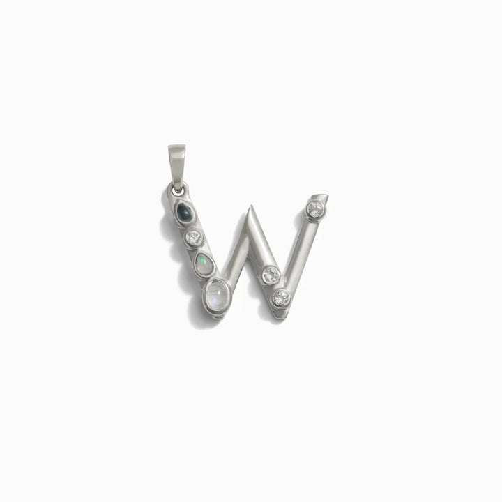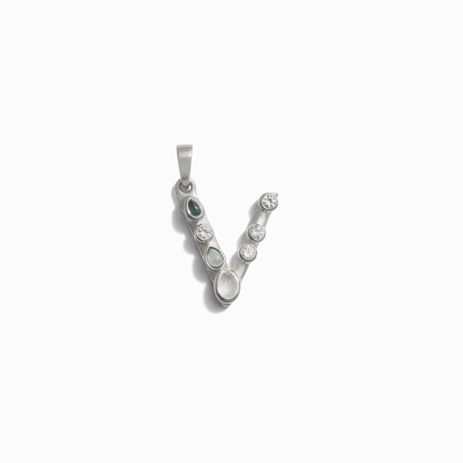 Handcrafted in 14K yellow gold vermeil with pear-cut moonstones, opal, and London blue topaz. Dimensions vary depending on the letter.