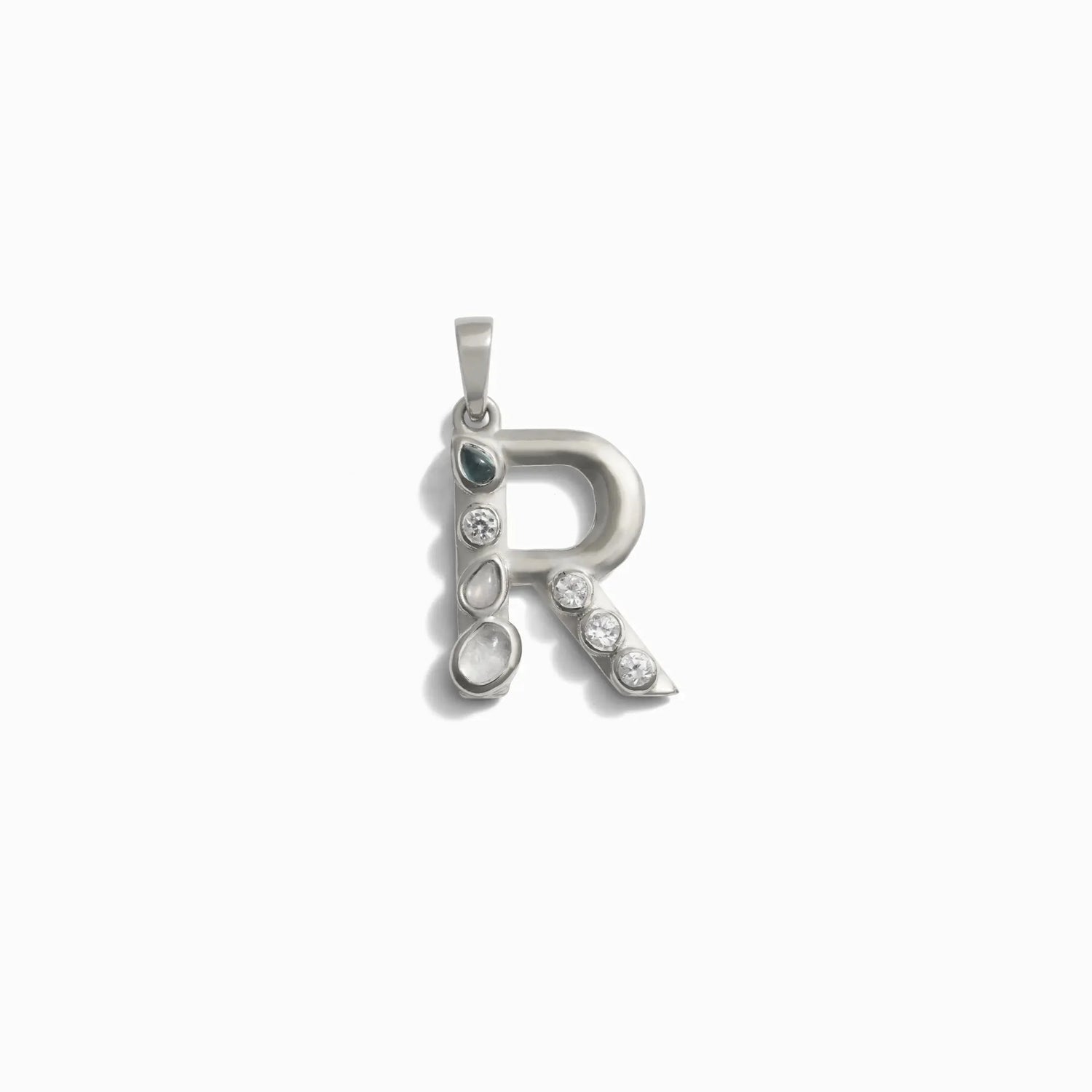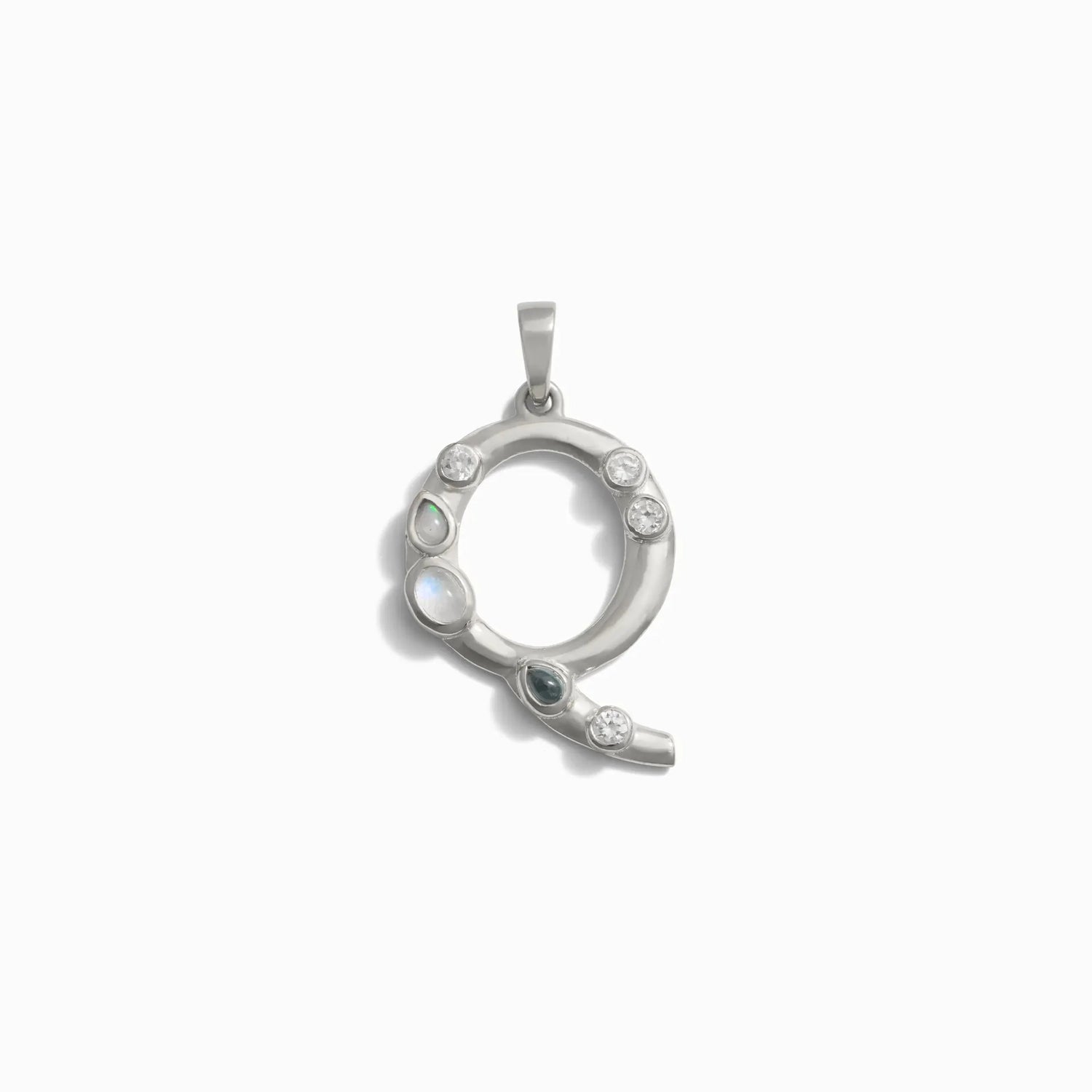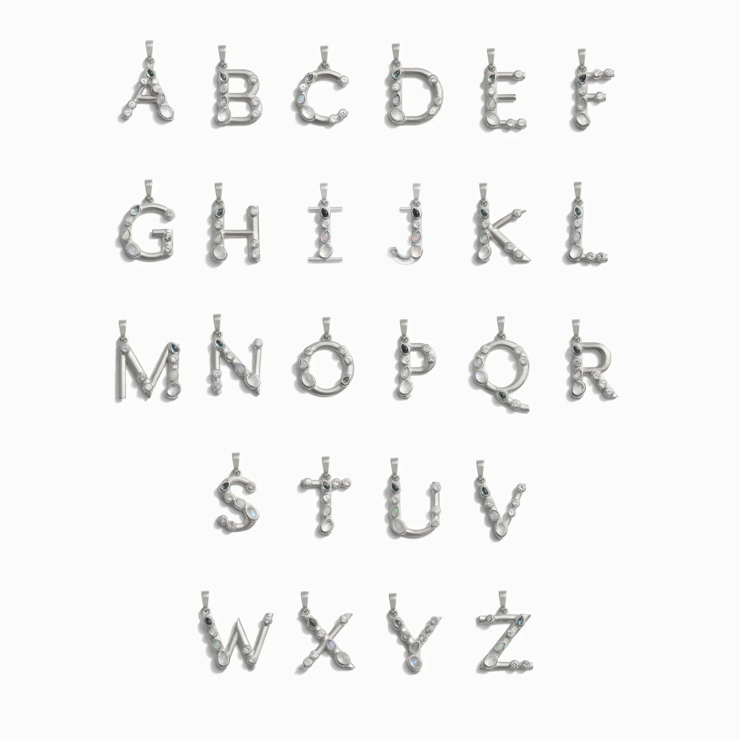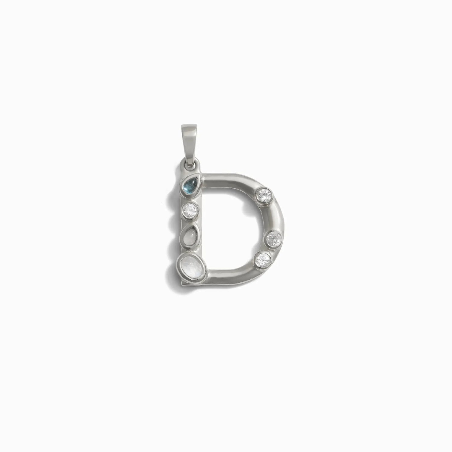 Handcrafted in 14K yellow gold vermeil with pear-cut moonstones, opal, and London blue topaz. Dimensions vary depending on the letter.
