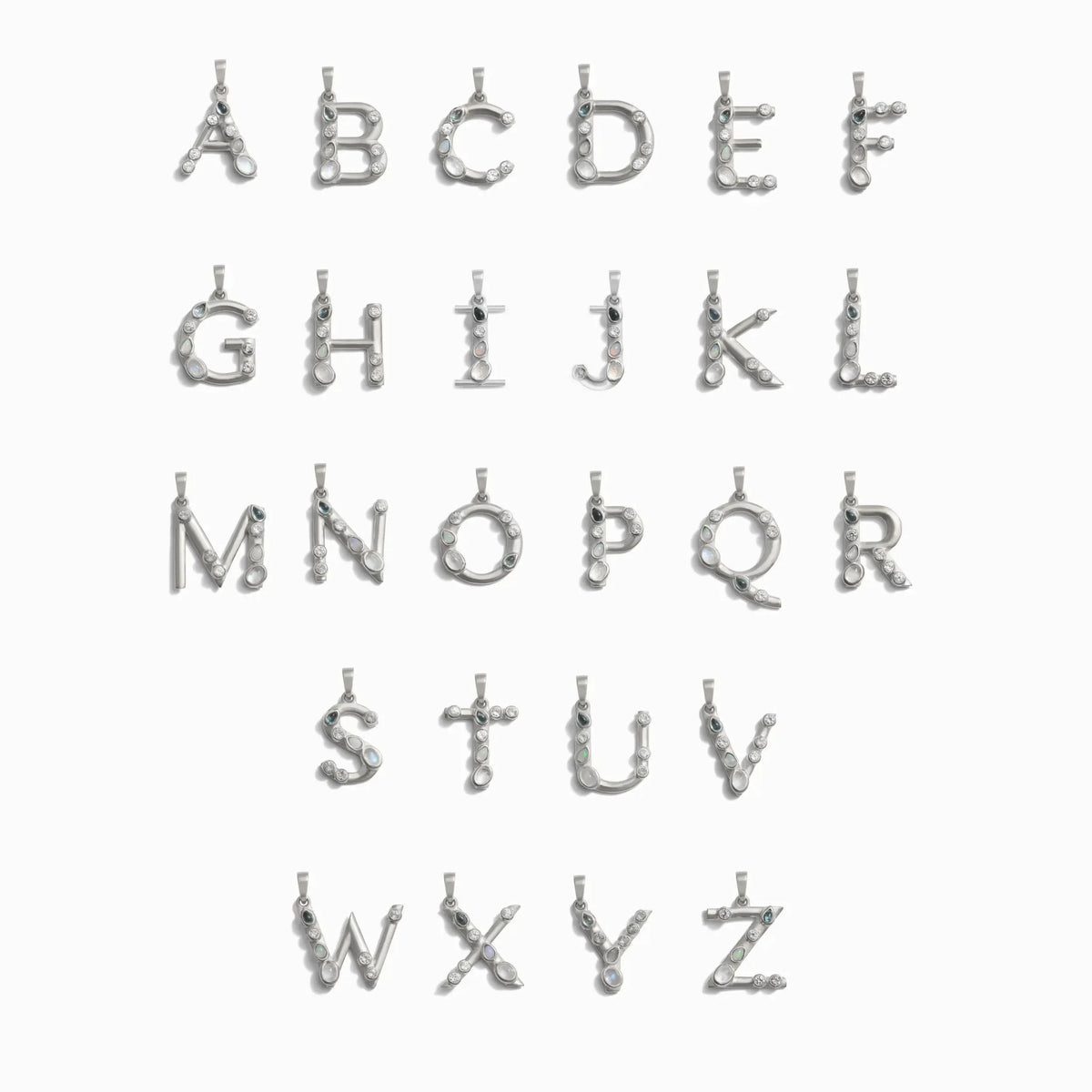 This S Initial Pendant by Awe Inspired offers a gem-packed design for those who value personalization in their jewelry. Each charm is adorned with bezel-set gemstones of varying cuts and sizes, creating a statement piece. Smaller letters contain fewer gemstones but still offer a luxurious, eye-catching design.