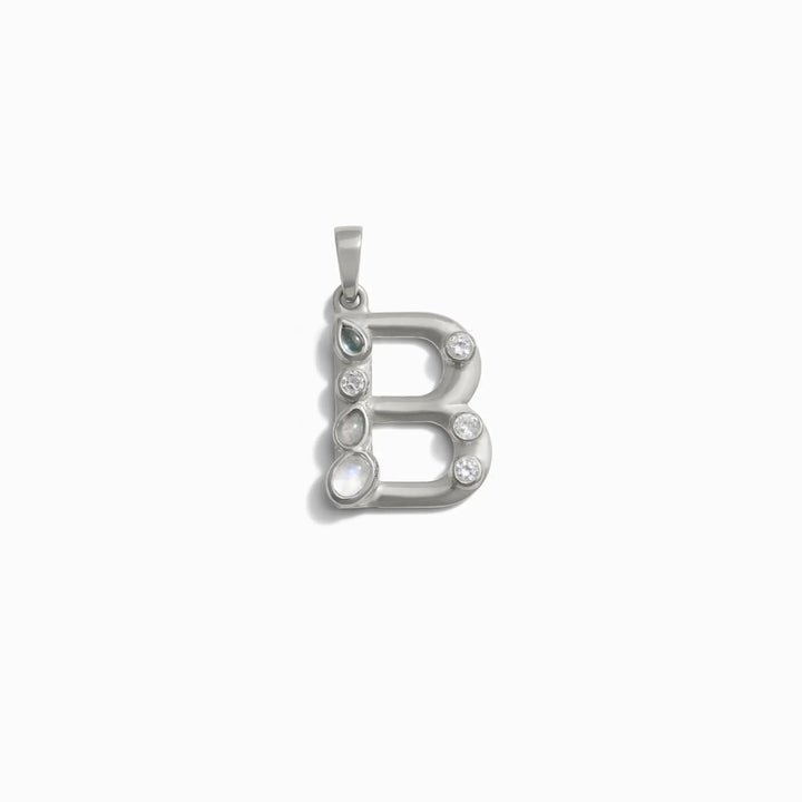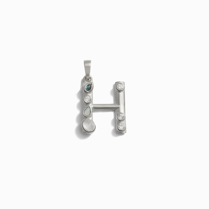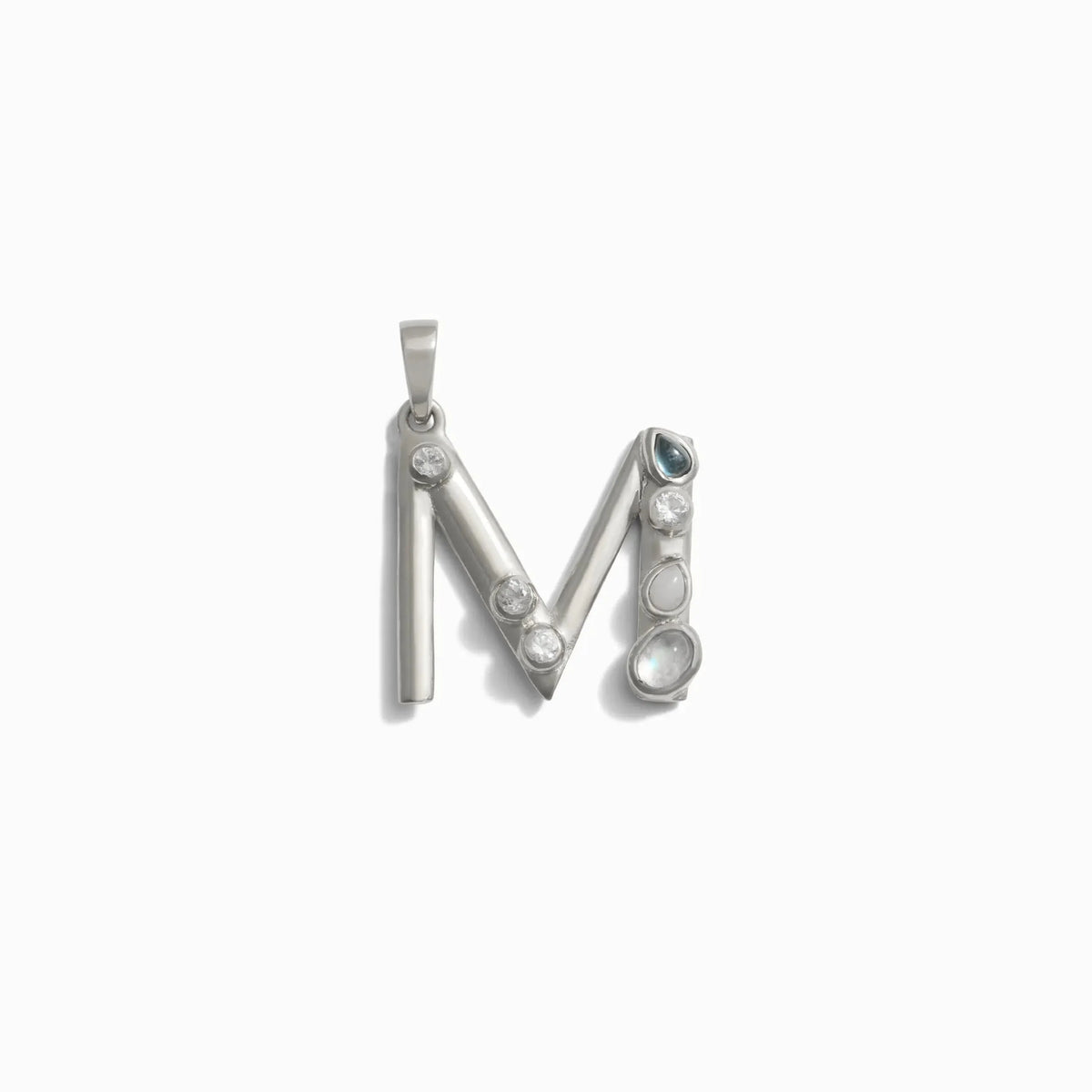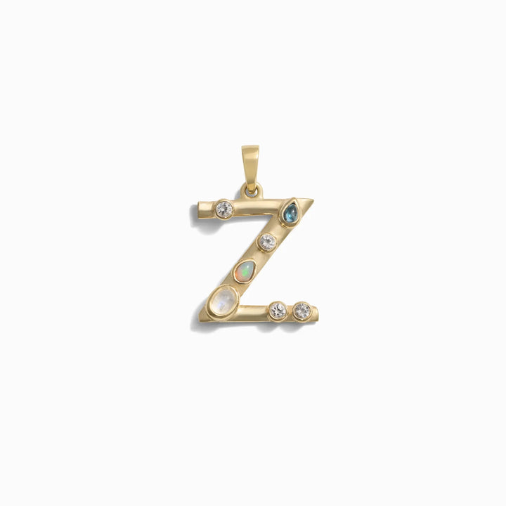 Handcrafted in 14K yellow gold vermeil with pear-cut moonstones, opal, and London blue topaz. Dimensions vary depending on the letter.
