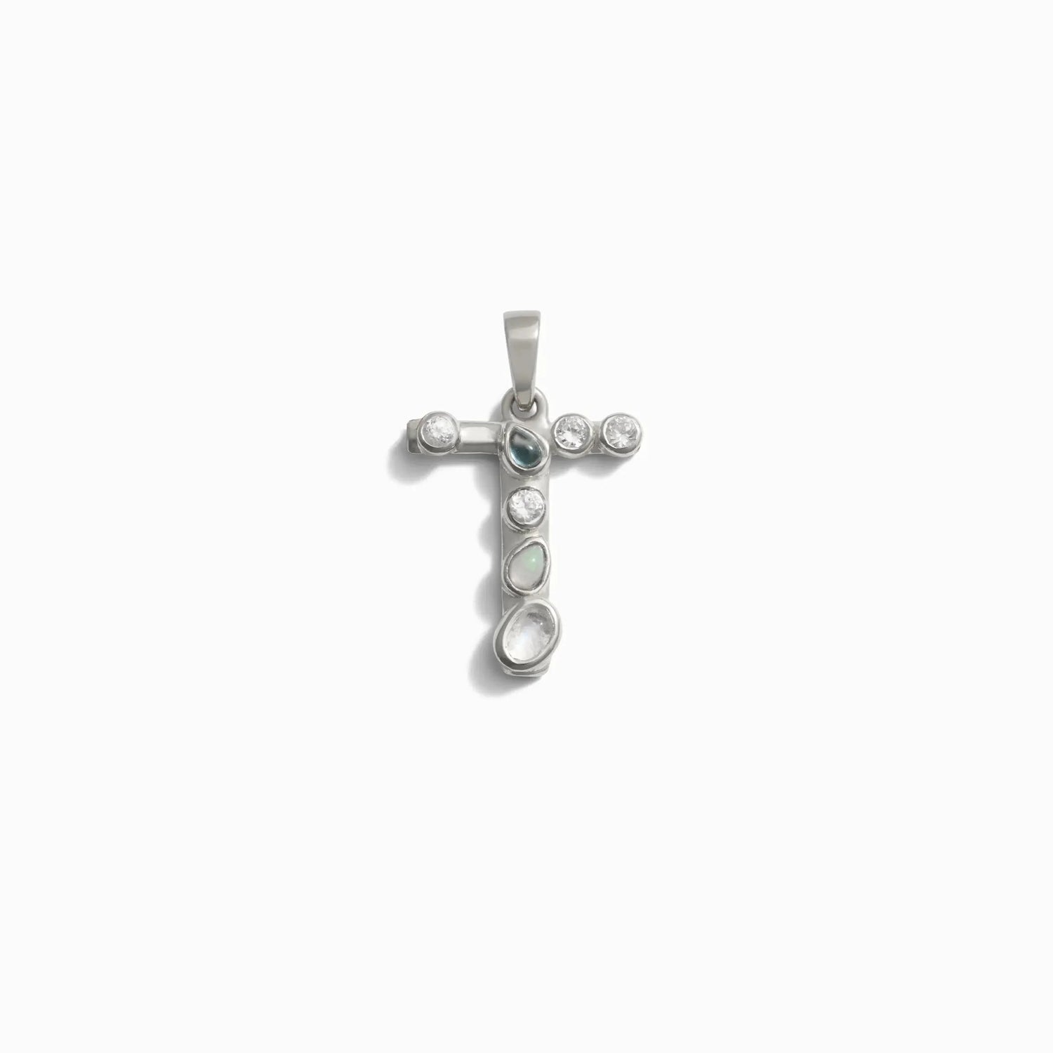 This T Initial Pendant by Awe Inspired brings a personalized and gem-packed flair to your jewelry collection. Featuring bezel-set gemstones in a variety of cuts and sizes, this charm is a statement-making piece that celebrates individuality. Smaller letters will have fewer gemstones, yet maintain a striking design.