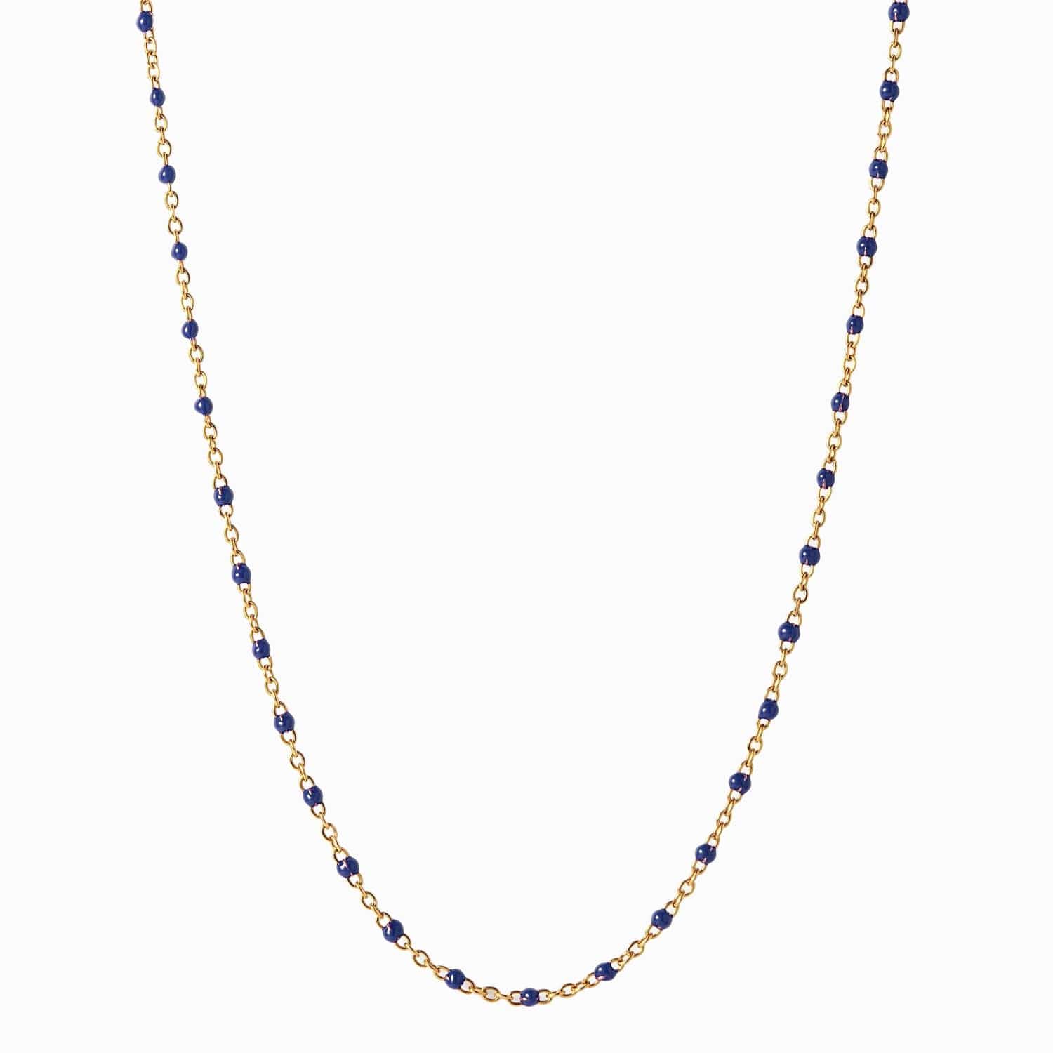 This Ruby Colored Enamel Necklace by Awe Inspired is adorned with ruby-colored enamel beads, applied by hand to create a one-of-a-kind piece. Its delicate design makes it an ideal accessory for everyday elegance.