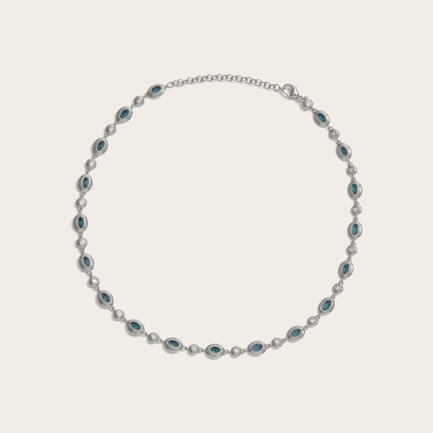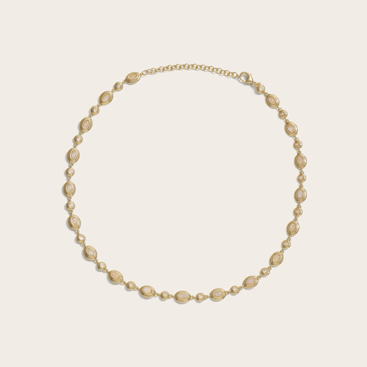 This Gemstone Tennis Necklace by Awe Inspired is a modern reinterpretation of a classic silhouette, offering a luxurious and meaningful addition to your collection. The luminous, bezel-set gemstones are chosen to align with specific energies, connecting you to your intuition, bringing clarity, or promoting healing. The addition of white topaz, a gemstone of manifestation, adds a layer of purposeful brilliance. Its adjustable design makes it incredibly versatile, perfect for wearing as a necklace or as a double-wrapped bracelet, symbolizing your ability to adapt and flow with life's rhythm.