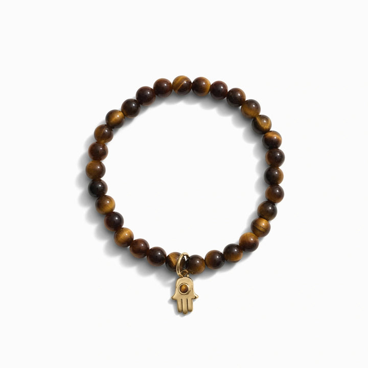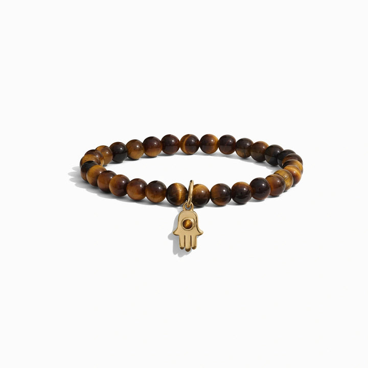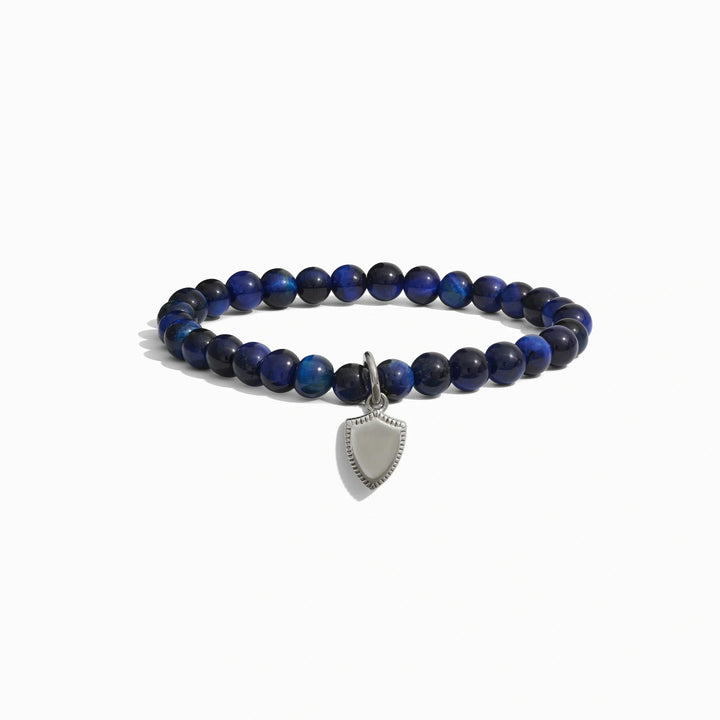 The Amulet Bracelet by Awe Inspired is a purposeful accessory crafted for those who move with intention. Each bracelet features hand-cut gemstone beads and an amulet, making it a daily reminder of your purpose. You can choose your path: a Sword with black onyx for focus and fortitude; a Hamsa with tiger's eye for protection and intuition; a Shield with blue tiger's eye for wisdom and strength; or a Shark Tooth with labradorite for ancient strength.