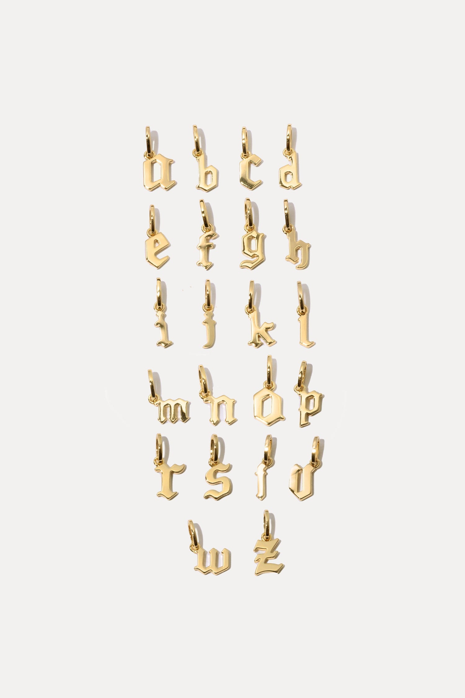 This Petite Gothic Letter Charm by Miranda Frye offers a subtle and meaningful way to wear your story. Its compact size and vintage-inspired Gothic font make it perfect for personalized layering with a refined twist. An intimate reminder of a name or loved one, close to your heart.
