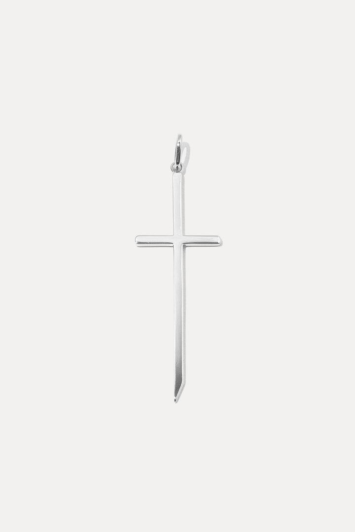This Cross Charm by Miranda Frye in silver finish offers a sleek update on a sacred symbol. With its elegant lines and elongated silhouette, this piece blends tradition with modernity. A meaningful gift or personal emblem of faith and style.