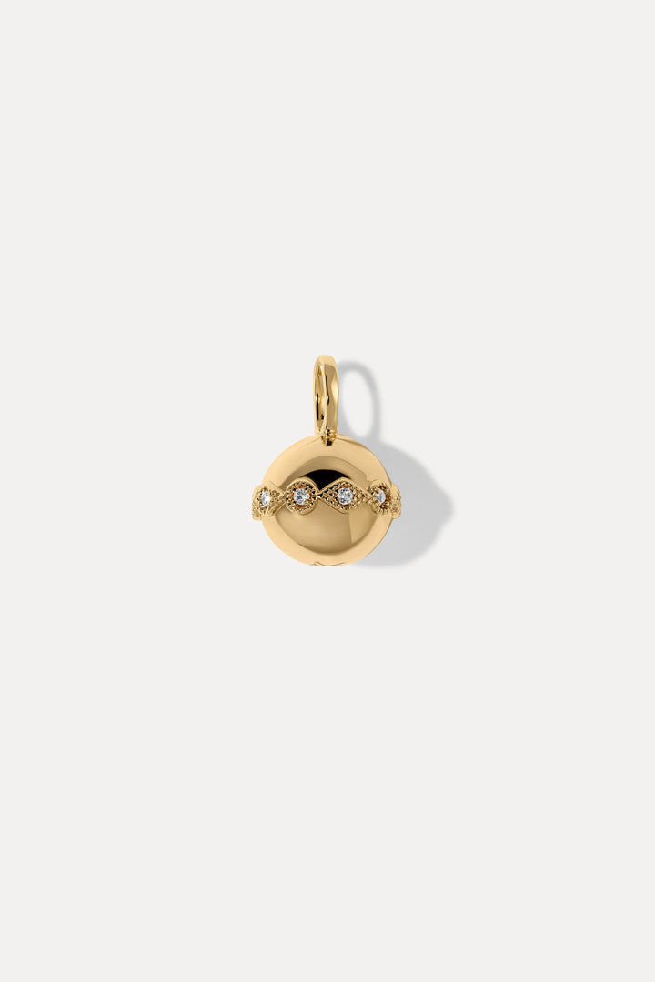 The Aurora Charm by Miranda Frye channels vintage beauty through its ornate sphere design, adorned with glimmering stones and intricate details. Inspired by celestial elegance and old-world charm, this piece adds a radiant, timeless glow to any charm arrangement—perfect for those who love heritage-inspired styling.