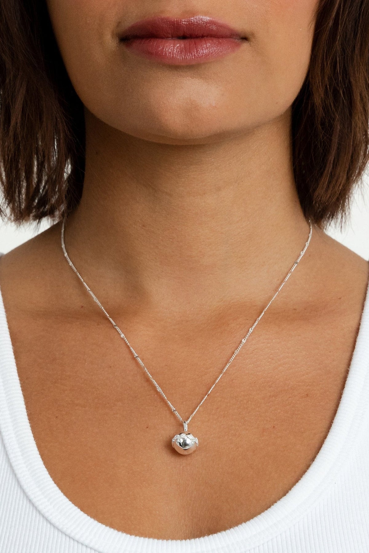 Sterling silver-plated brass. 10mm height, 12mm width.