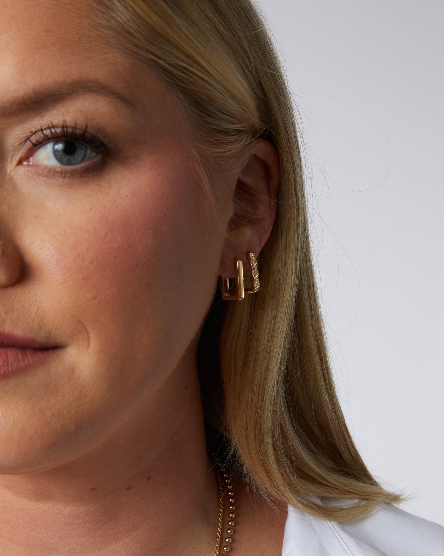 These Kate Huggies by Miranda Frye channel timeless elegance with a geometric edge, inspired by influencer Kate Bryan. Their bold shape and refined profile elevate any ear party with ease.