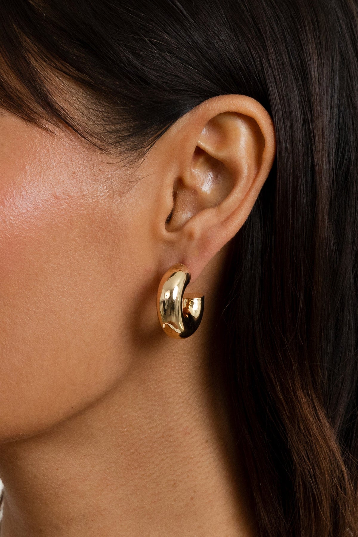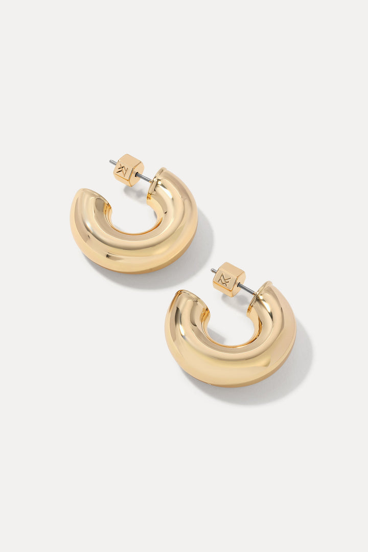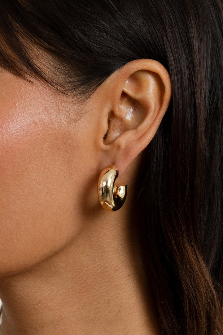 These Drew Huggies by Miranda Frye bring retro-inspired charm in a bold silhouette. Their rounded, chunky design gives vintage appeal while remaining sleek and versatile. A go-to pair for effortless edge.