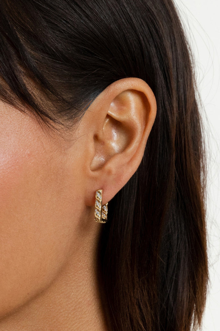 These Brynn Huggies by Miranda Frye are a vintage-inspired evolution of the beloved Kate Huggies. Their compact form is enhanced by delicate CZ accents and a refined gold finish — timeless with a twist.