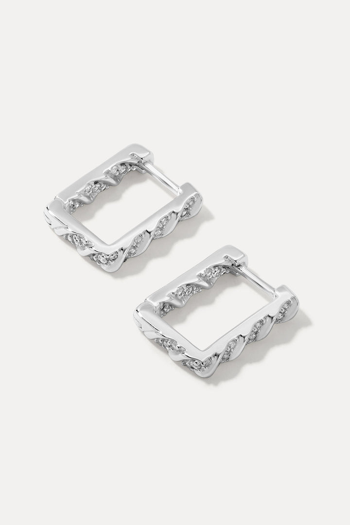 Sterling silver-plated brass. 3mm wide, 16mm drop. 1.25mm cubic zirconias.