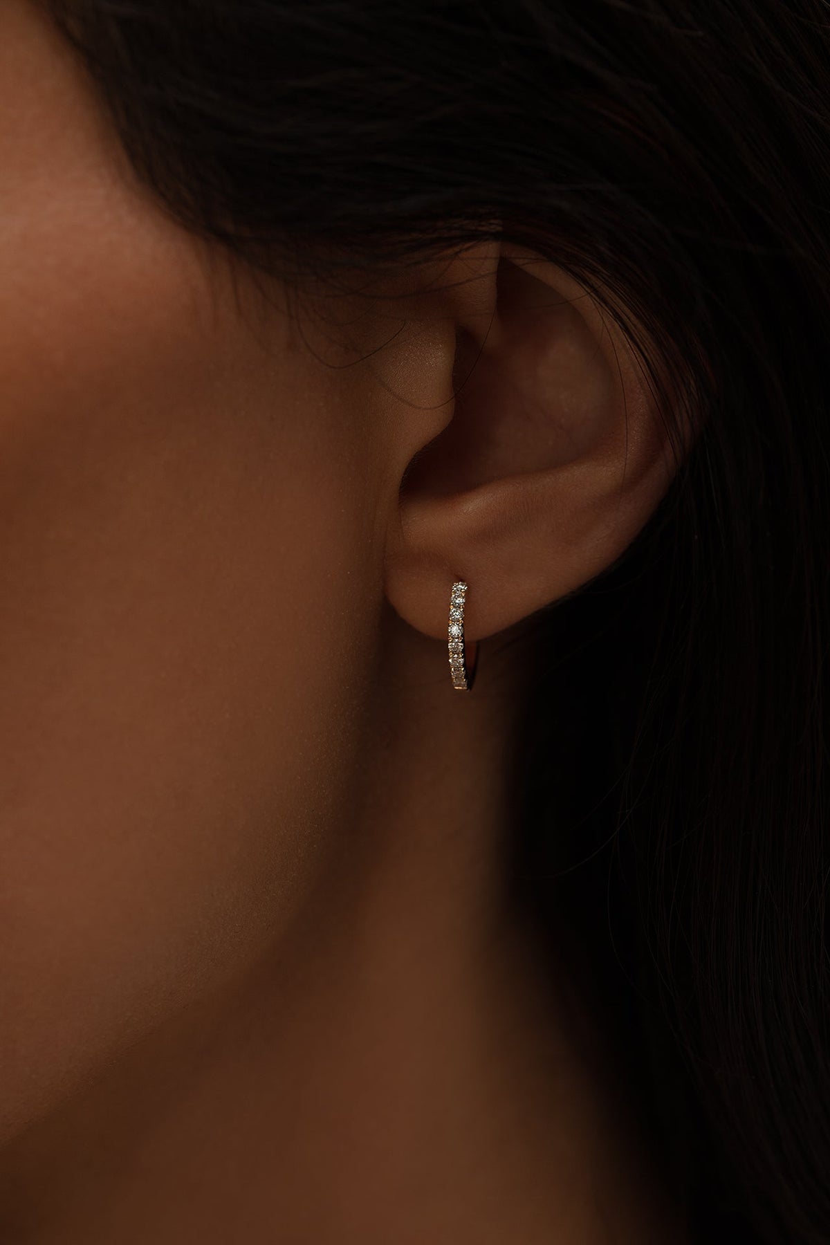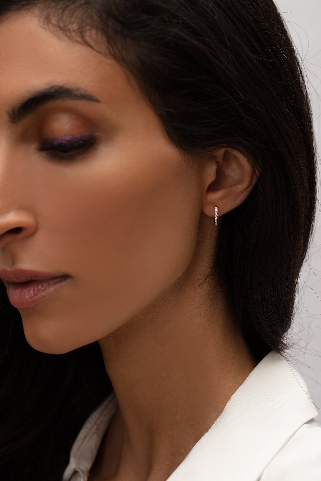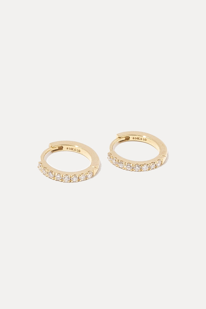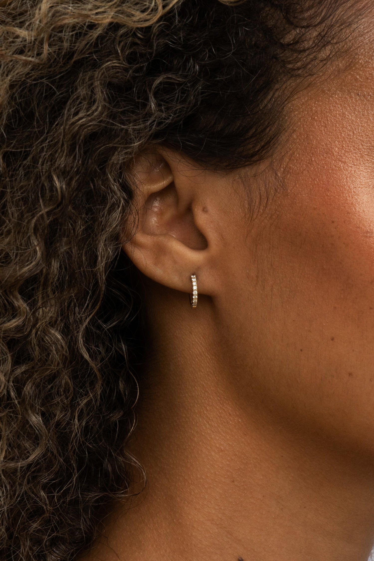 These Pavé Diamond Huggies by Miranda Frye are an elegant expression of subtle sparkle. With a refined row of lab-grown diamonds, they bring timeless brilliance to your ear stack. Delicate yet radiant, these petite huggies symbolize enduring beauty and versatility—ideal for layering or letting them shine on their own.