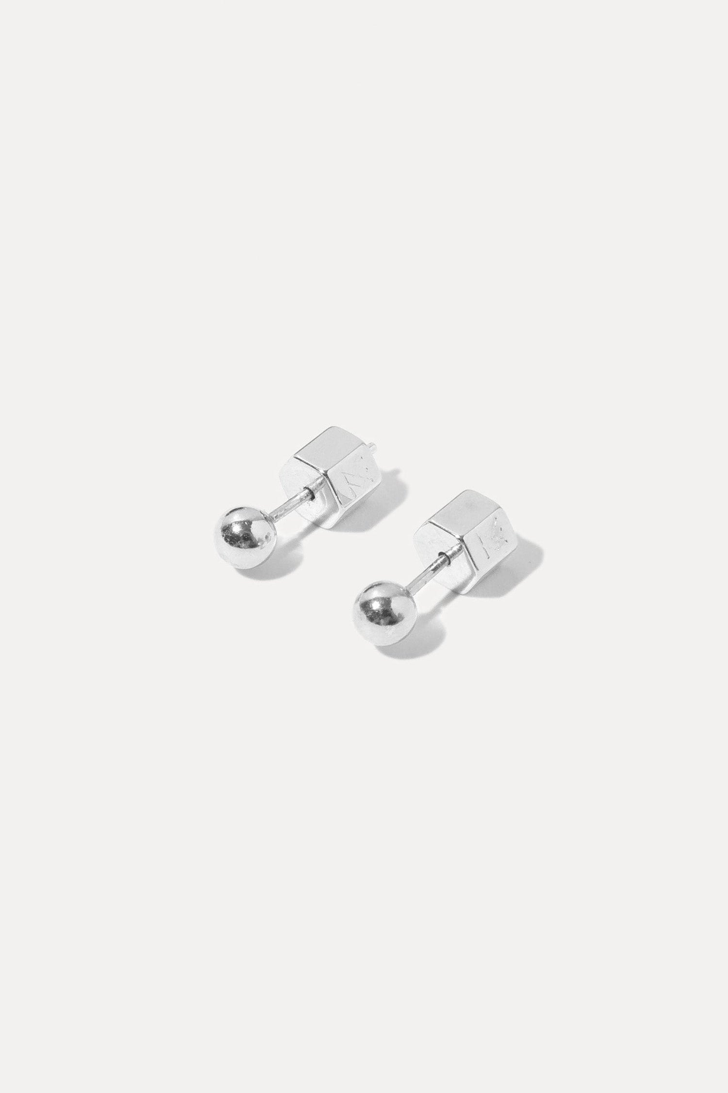 Crafted in sterling silver. Measures 4mm in diameter. Includes custom MF earring backs.