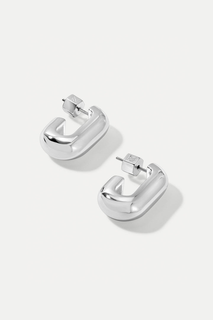 Made from sterling silver-plated brass with surgical steel posts and custom MF backings. Measures 22mm high, 7mm wide.