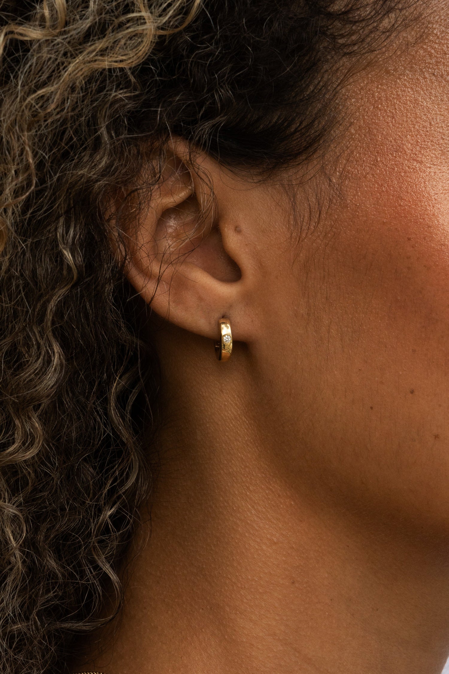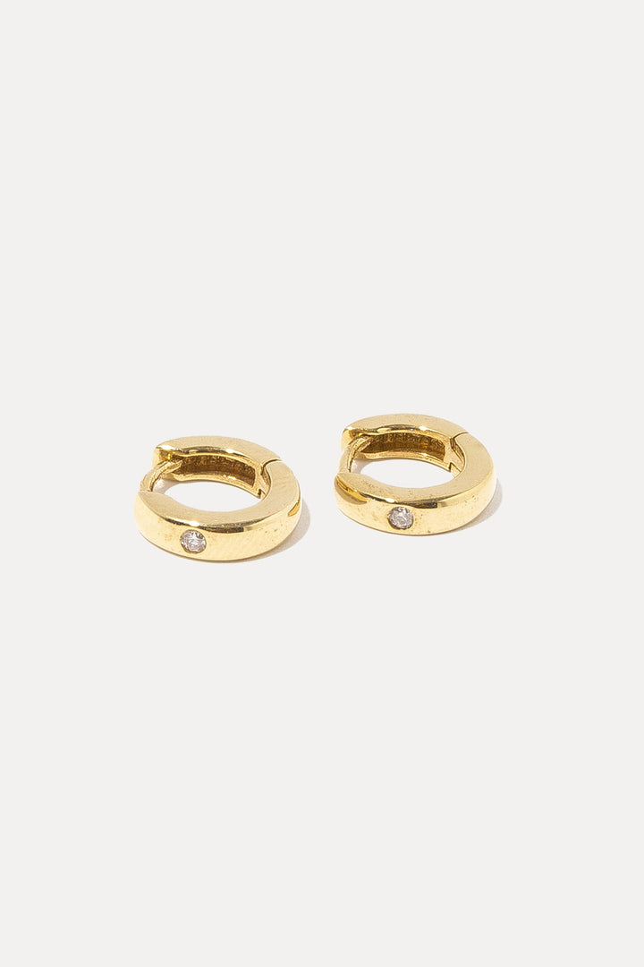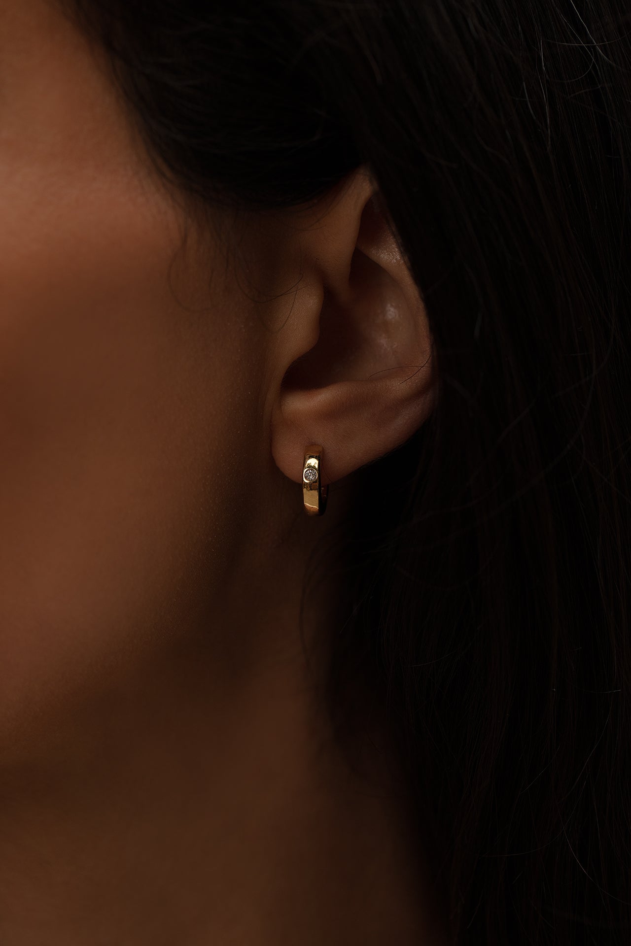 These Solitaire Diamond Huggies by Miranda Frye offer timeless elegance with a contemporary twist. Featuring a single sparkling diamond, these refined huggies shine with subtle luxury—your new everyday essential with heirloom-worthy appeal.