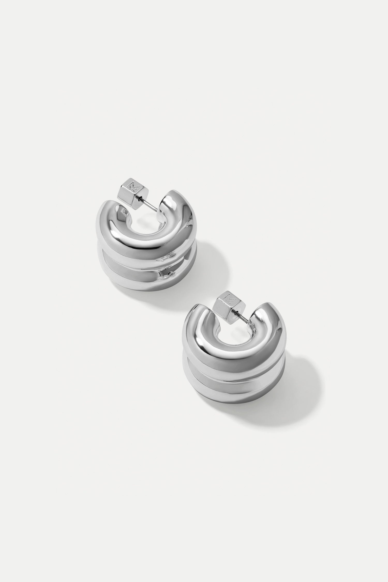 18k sterling silver-plated brass with surgical steel posts and custom MF backings. Measures 20mm high, 14mm wide.