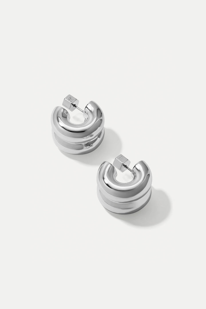 These Chloe Huggies by Miranda Frye offer the illusion of stacked hoops in one seamless piece. Their double-layered design is both sleek and playful, with the kind of everyday sophistication Miranda herself favors. Lightweight, stylish, and endlessly wearable.