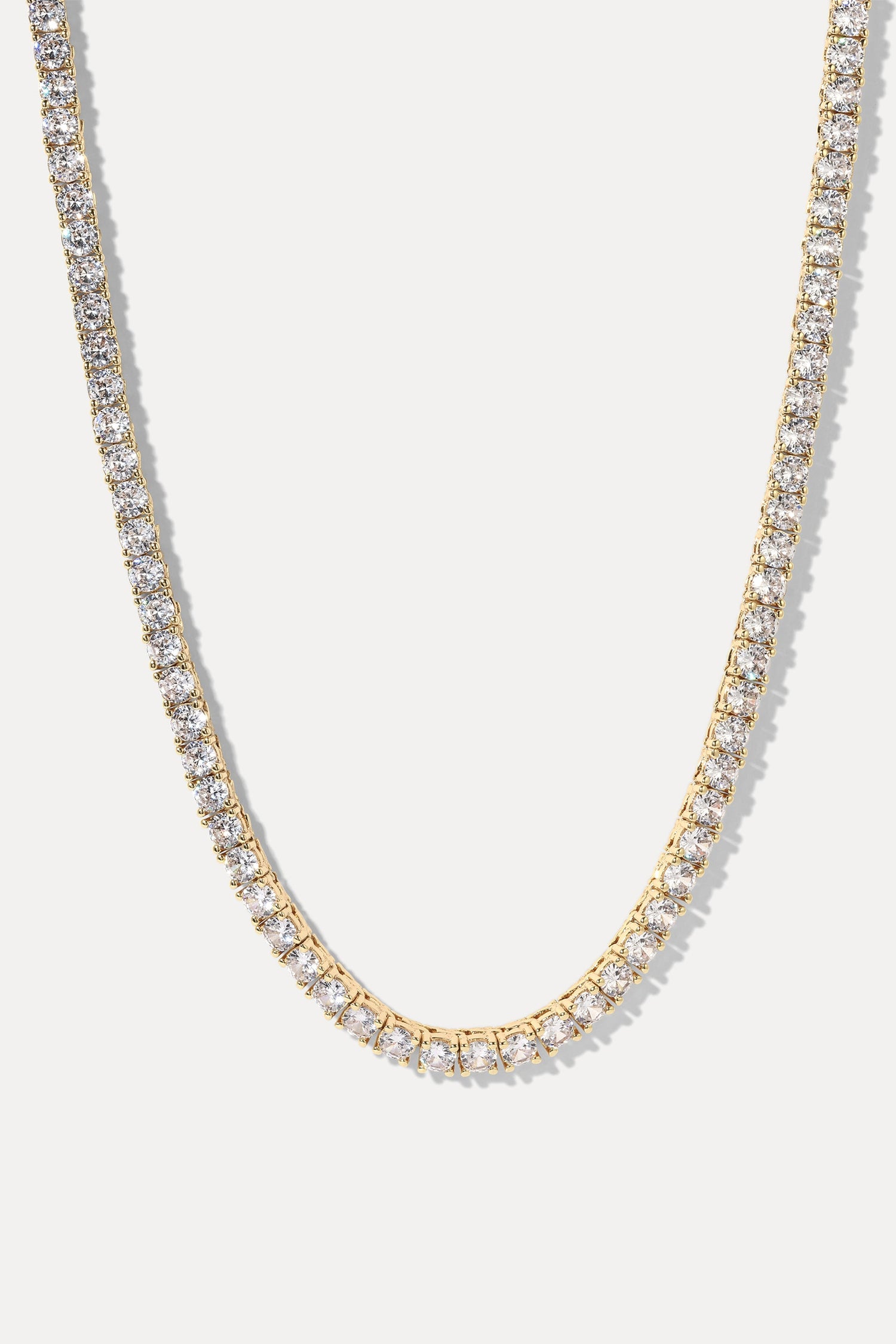 This Audrey Necklace by Miranda Frye Jewelry redefines tennis-style with radiant CZs set in polished gold. Light-catching and sophisticated, it's made for layering or commanding attention solo.