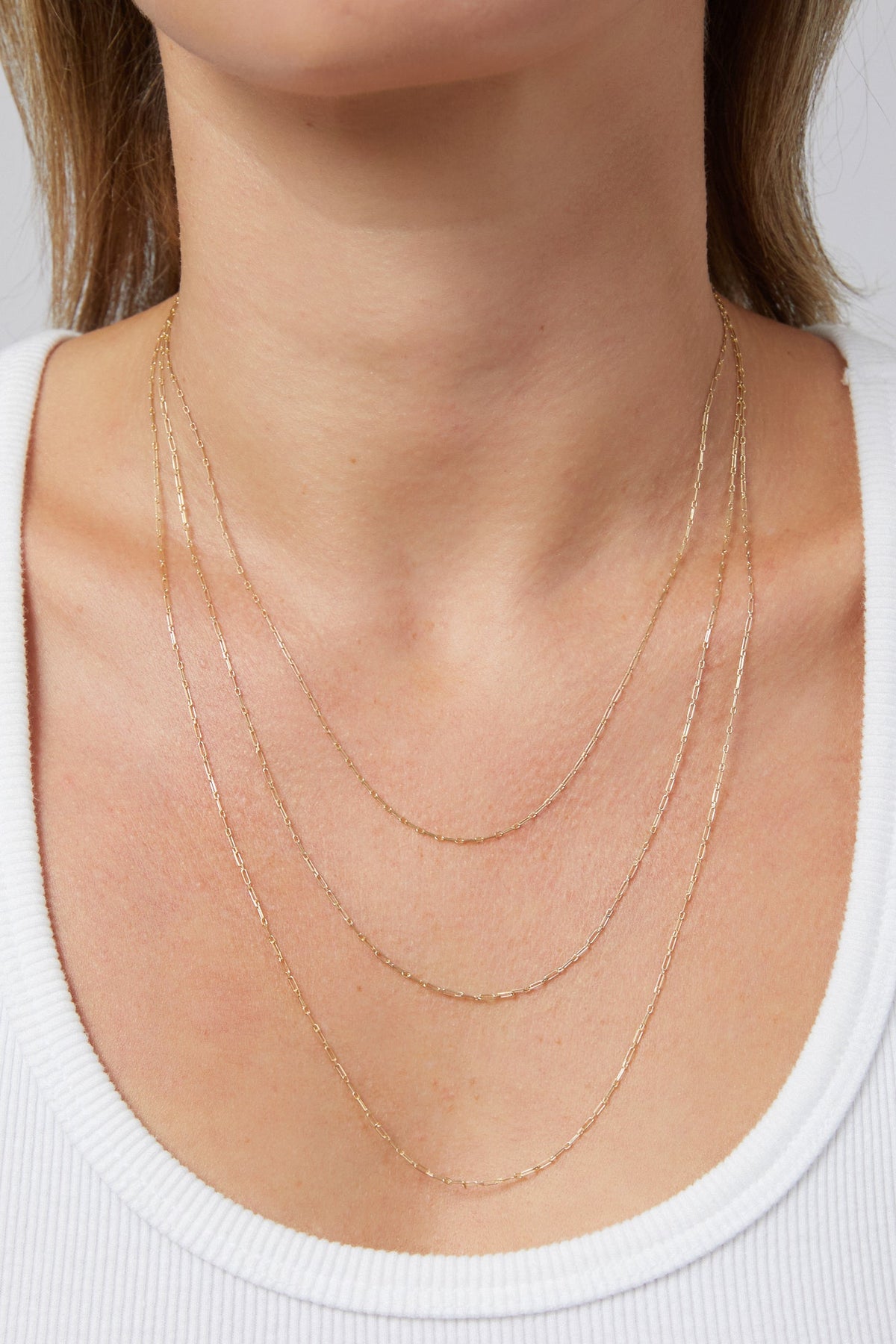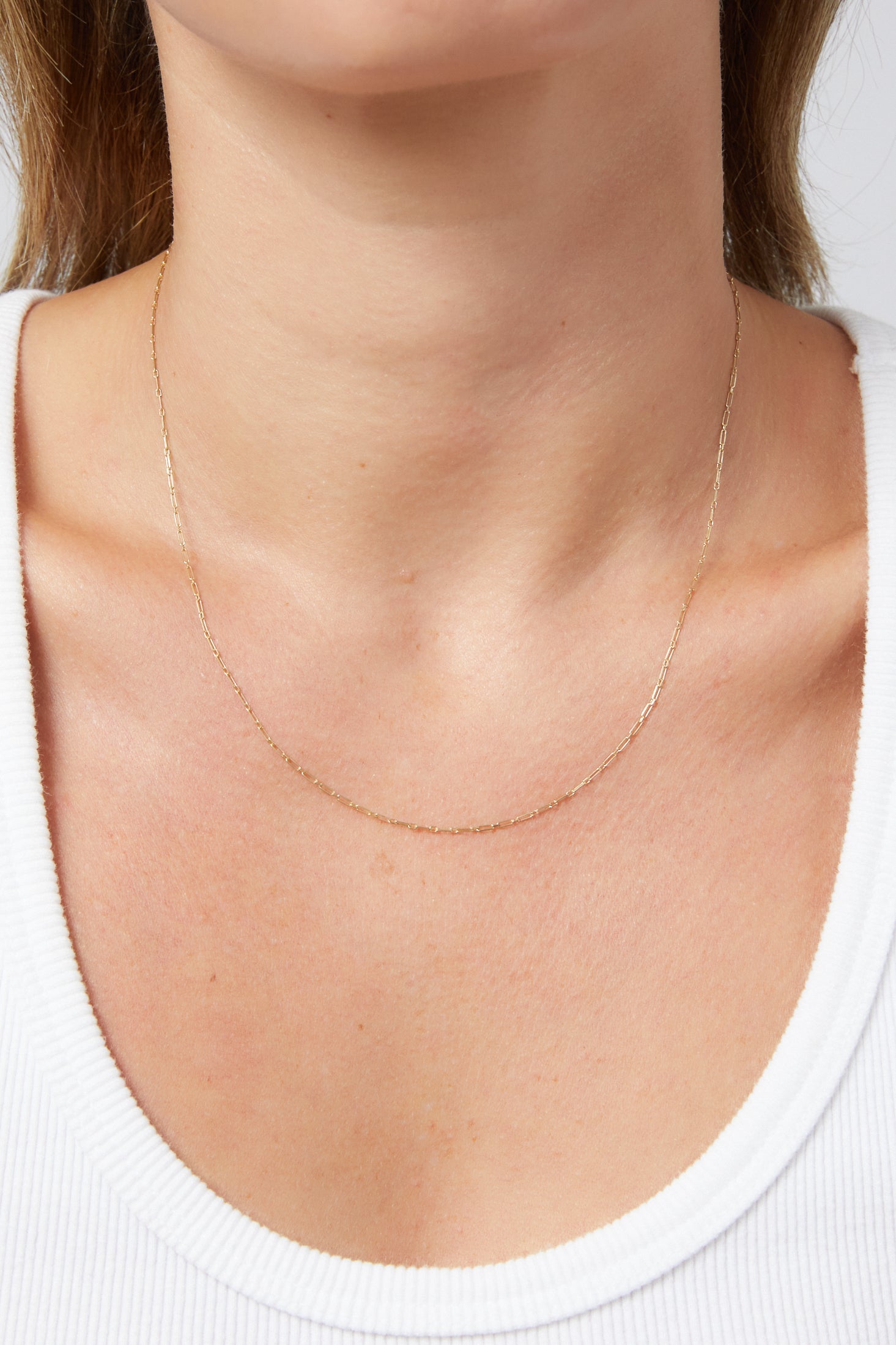 18k gold-plated sterling silver. 1mm chain width. Available in 3 lengths.