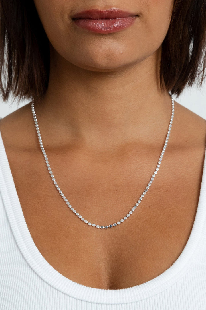 Sterling silver-plated brass. 2.5mm chain width. Available in 3 lengths.
