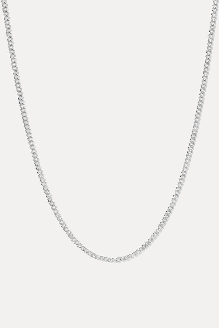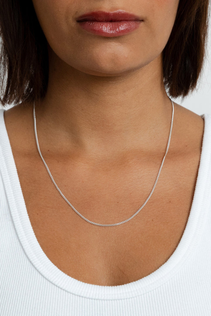 Sterling silver with a 1.8mm chain width. Available in 18', 19', 21', 22', 24', and 25' lengths.