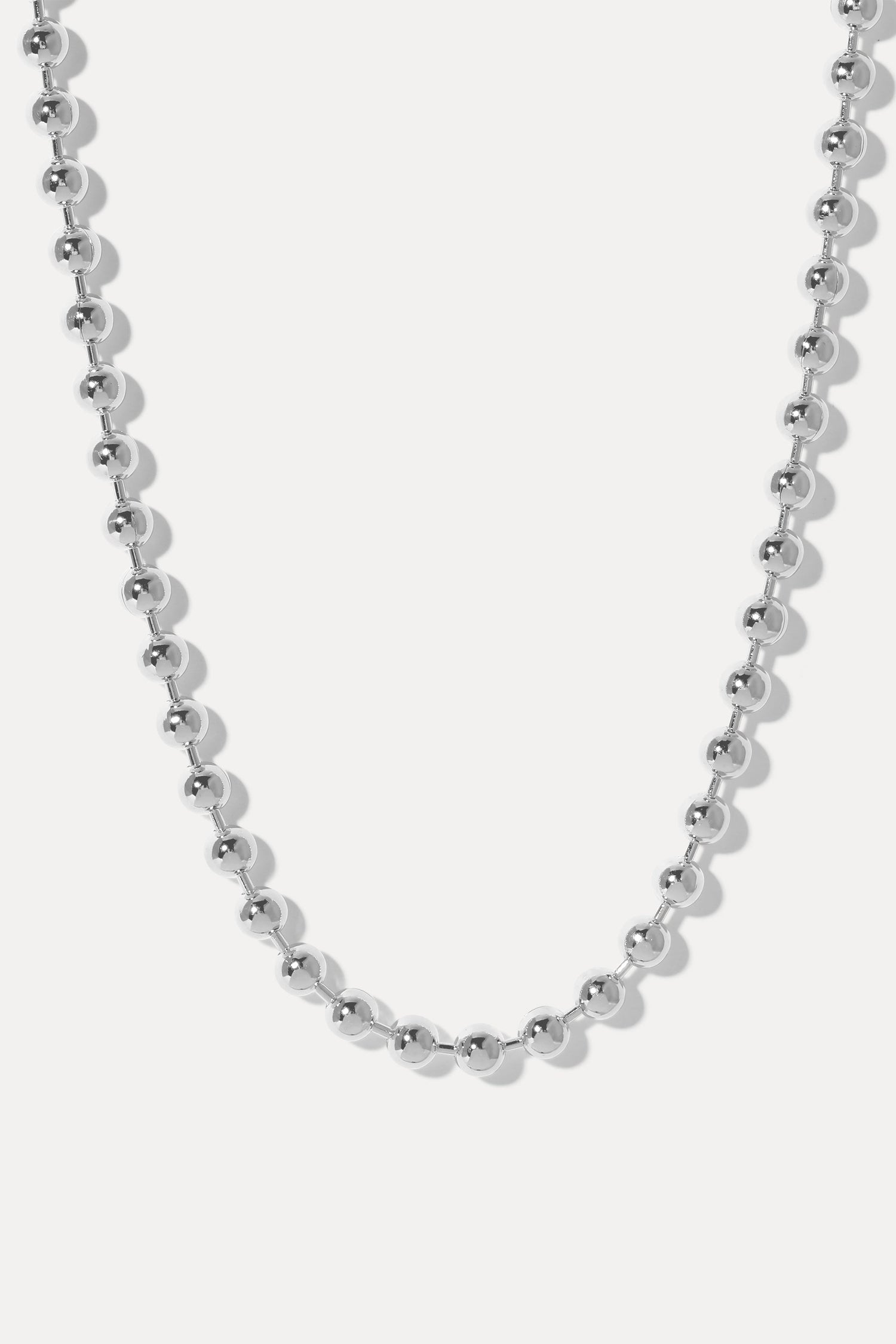 Solid sterling silver with 4mm beads. Adjustable between 15'–17'.