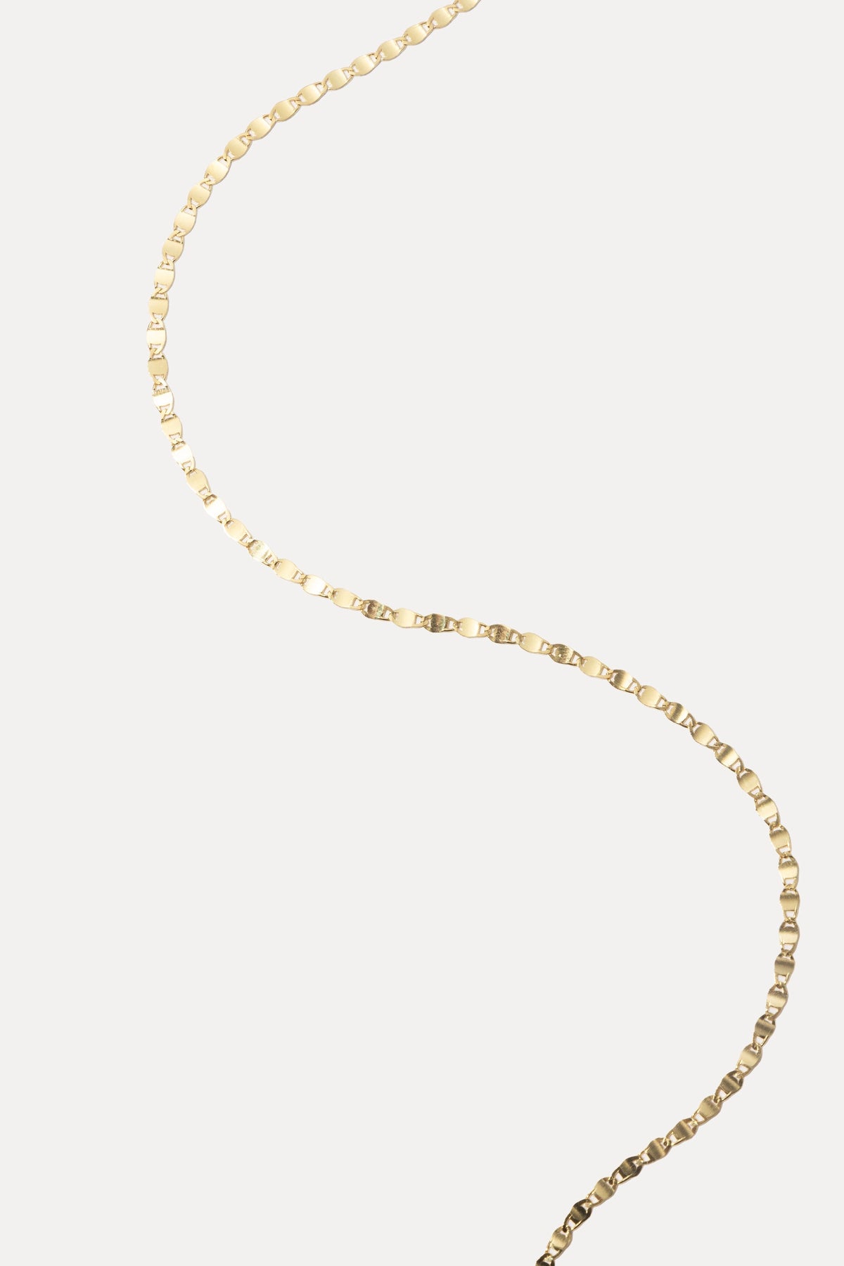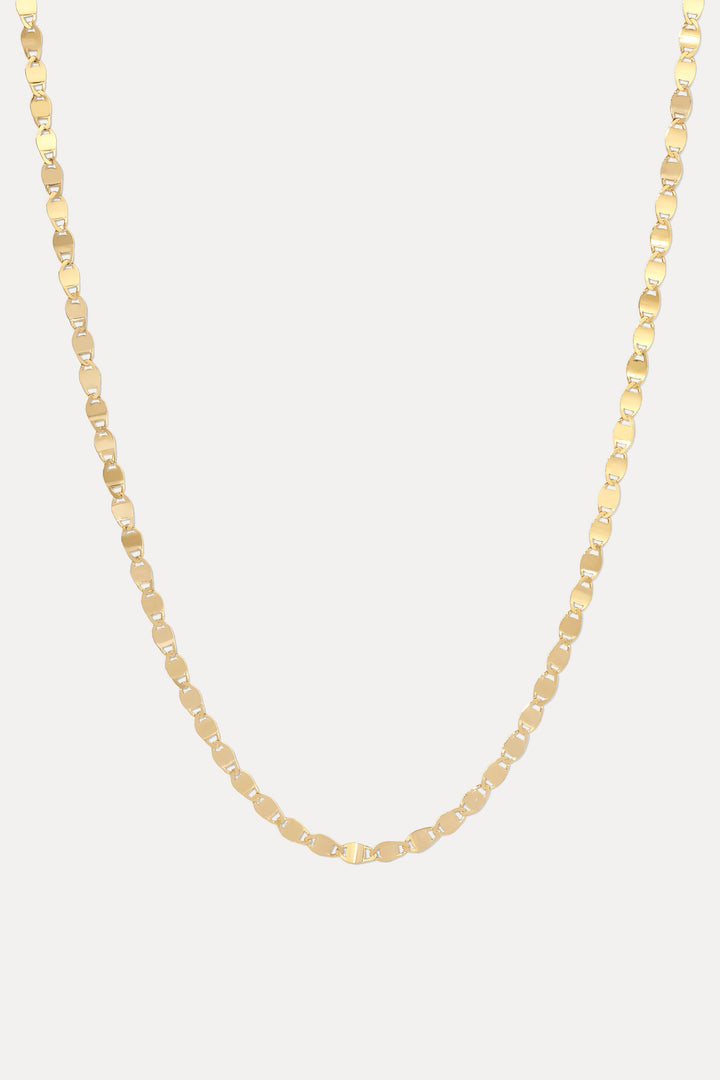 The Mirror Chain Necklace by Miranda Frye Jewelry offers effortless elegance with a hint of shimmer. The Valentino-style links reflect light beautifully, adding refined sparkle to your neckline. Whether styled alone or layered, this necklace is a modern classic.