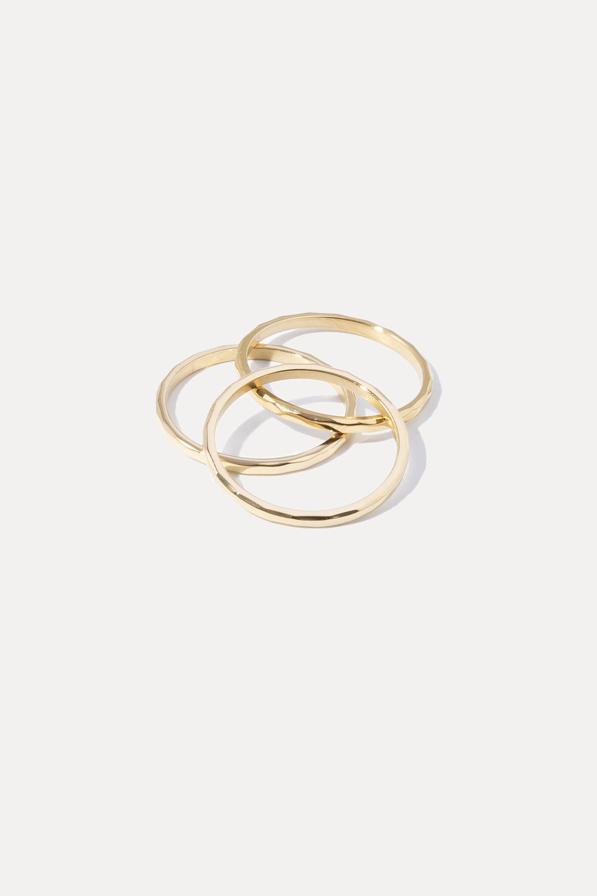 Set of three 1.5mm hammered bands in 18k gold-plated brass.