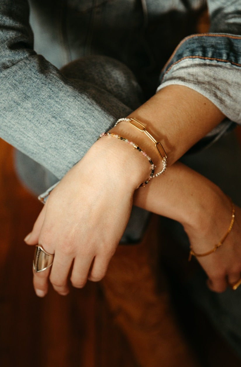 The 1969 Bracelet - Tourmaline by Sierra Winter Jewelry channels the colorful, liberating spirit of Woodstock with an earthy palette of natural tourmaline beads. A symbol of freedom and creativity, this bracelet pulses with the eclectic energy of the 1960s, grounded in a modern silhouette with sterling silver and gold vermeil touches. Whether you're stacking it or wearing it solo, it’s a soulful celebration of color and individuality.