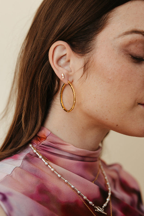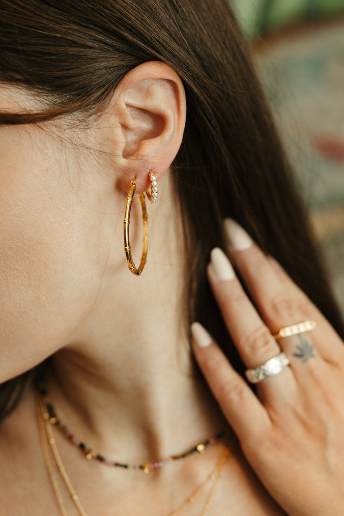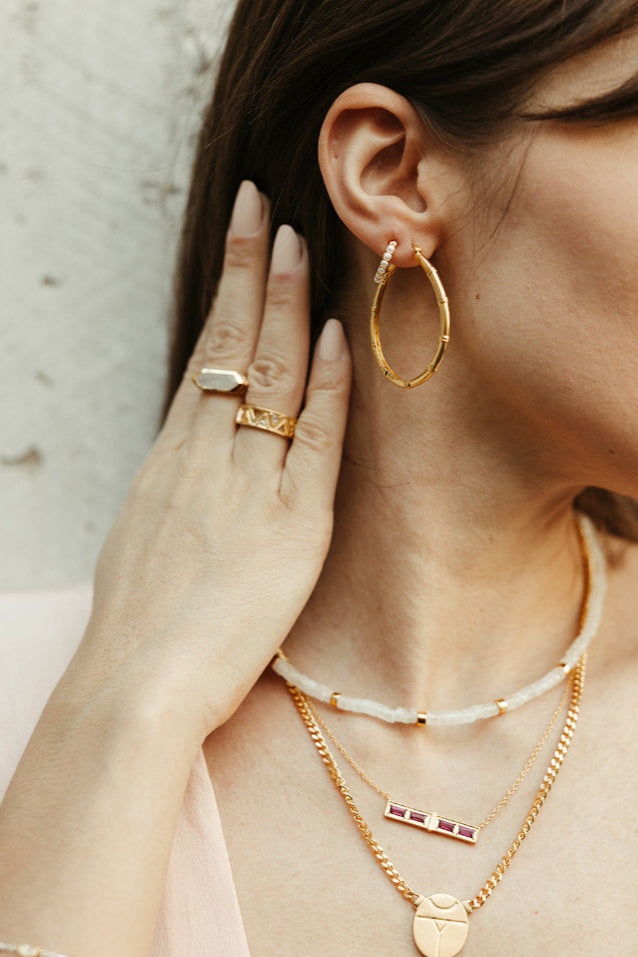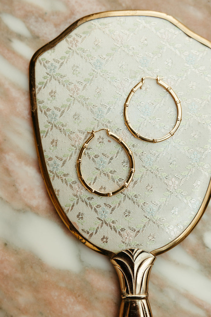 The Muse Hoop Earrings - Gold by Sierra Winter Jewelry bring bold elegance to your everyday look. With a textured finish and luminous gold vermeil shine, these oversized hoops are a power piece that channels confidence and creativity. Comfortable enough for all-day wear, they serve up a strong statement while remaining effortlessly wearable — perfect for your next muse moment.