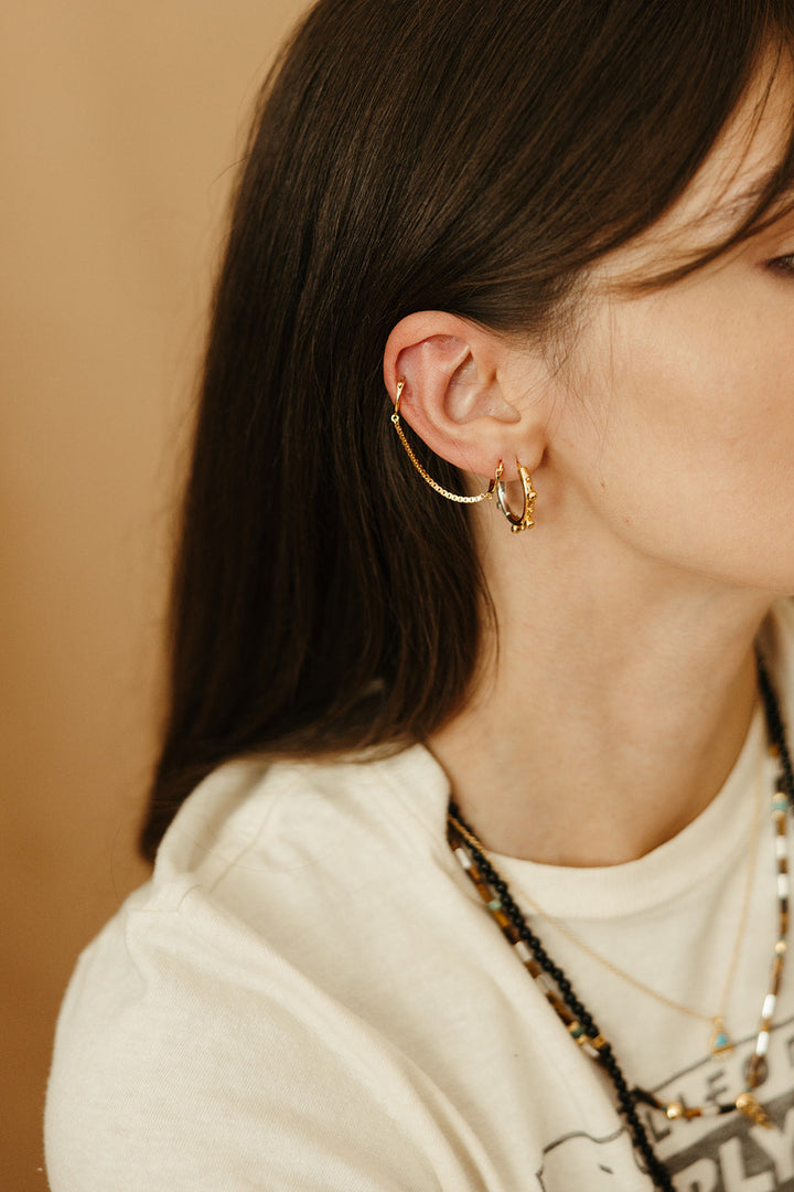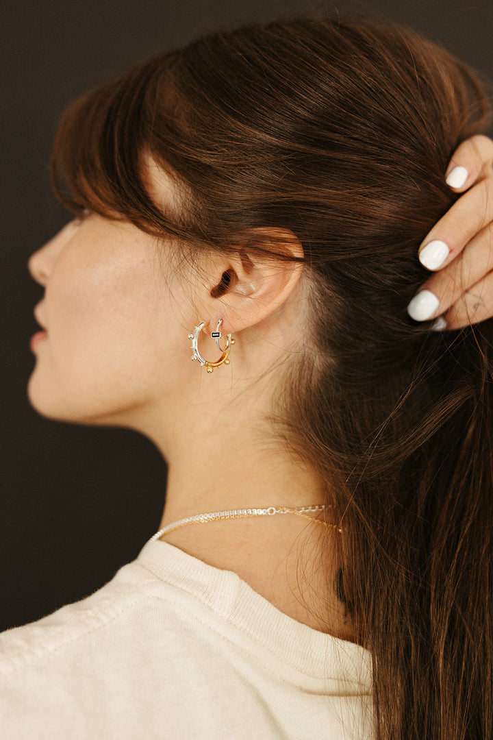 The Jukebox Hoop Earrings by Sierra Winter Jewelry are your new playlist in earring form — versatile, nostalgic, and always in rotation. With a clever reversible design, these mixed metal hoops let you choose between gold vermeil or sterling silver facing forward. Modern, playful, and rooted in cool, they’re a go-to for everyday remixing.