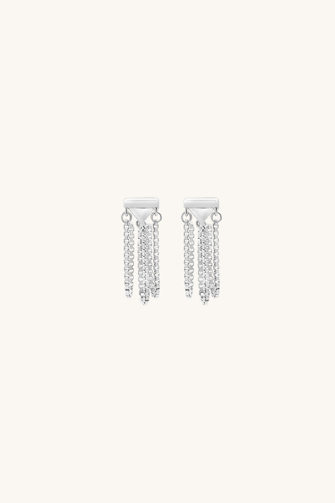These Bowie Hoop Earrings by Sierra Winter Jewelry in silver bring a celestial edge to your everyday. Small in size but big in personality, these hoops feature triple box chains that curve around the lobe for a cool, unexpected twist. Perfect for stacking or wearing solo.