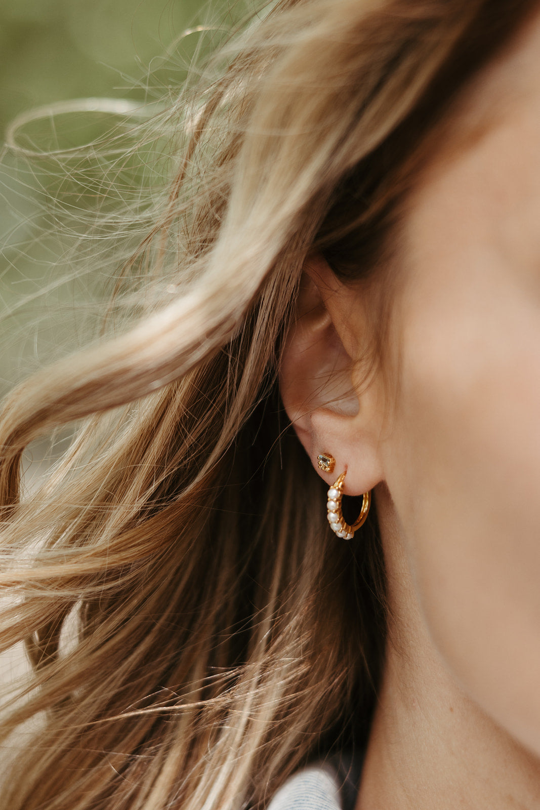 These Karma Hoop Earrings by Sierra Winter Jewelry in pearl embody grace, wisdom, and the soft strength of the June birthstone. Their creamy glow adds timeless beauty to any look—an elegant reminder that good energy always circles back.