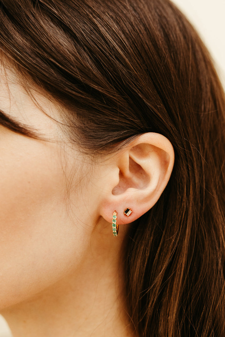 These Karma Hoop Earrings by Sierra Winter Jewelry in emerald are radiant symbols of May’s birthstone magic—love, renewal, and vitality. The rich green gems add a vibrant flourish to these everyday hoops, bringing luck and style together.
