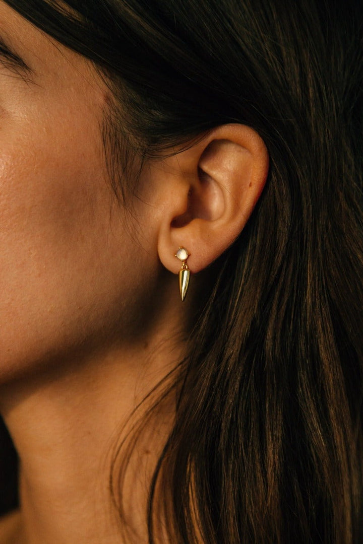 These Desperado Earrings by Sierra Winter Jewelry are a modern ode to western romance. A unique blend of strength and softness, these gold and opal drop earrings evoke the spirit of the untamed and the feminine. Their delicate movement and luminous finish make them perfect for both trailblazing days and starlit nights.